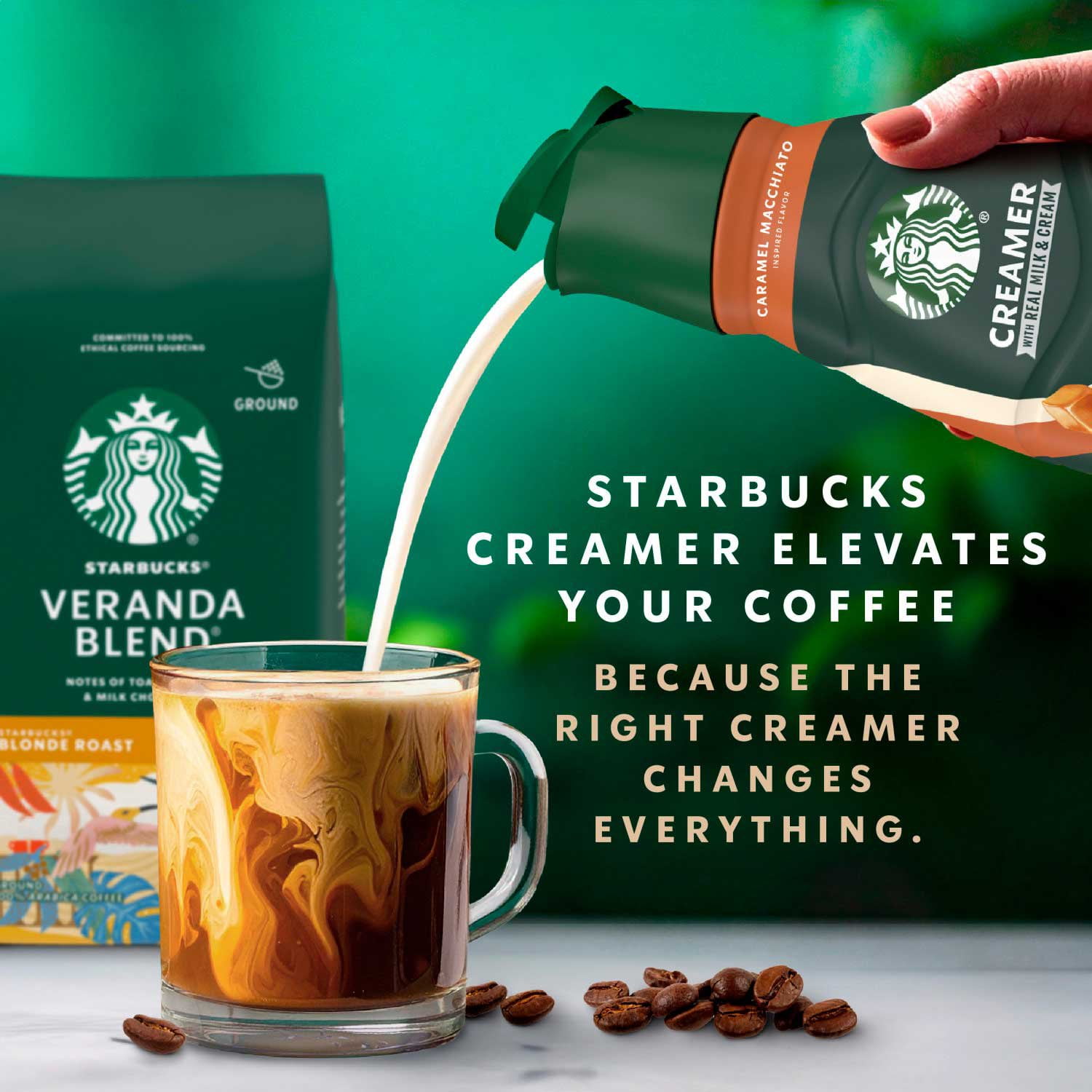 Enjoy your favorite Starbucks café flavors at home with Starbucks liquid coffee creamer. Inspired by Starbucks’ signature Caramel Macchiato, our Starbucks Caramel Macchiato Creamer, 58 fl. oz. makes every cup taste like the real thing. With layers of sweet, buttery caramel and hints of vanilla flavor, it has a great taste and creamy texture that set it apart from other flavored creamers. Add this caramel flavored coffee creamer to your cup and be instantly transported to your favorite Starbucks café, morning, noon or night.