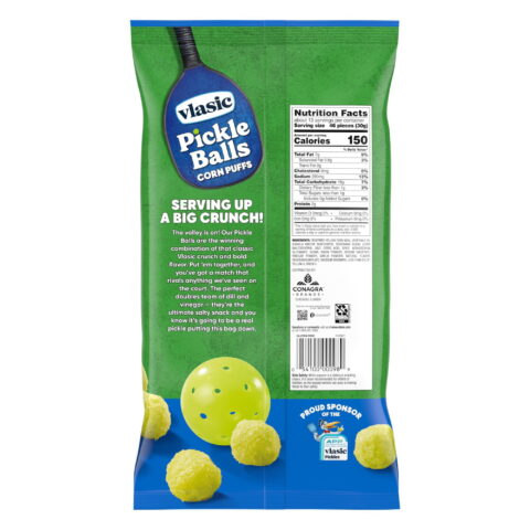 Introducing Vlasic® Pickle Balls Dill Pickle Flavored Corn Puffs, a snack that brings together the best of both worlds – crunch and flavor. Each bite of these corn puffs delivers a satisfying crunch that is sure to delight your taste buds. But the experience doesn’t stop there. The bold flavor of dill and vinegar adds a tangy twist, making this snack a standout among others.