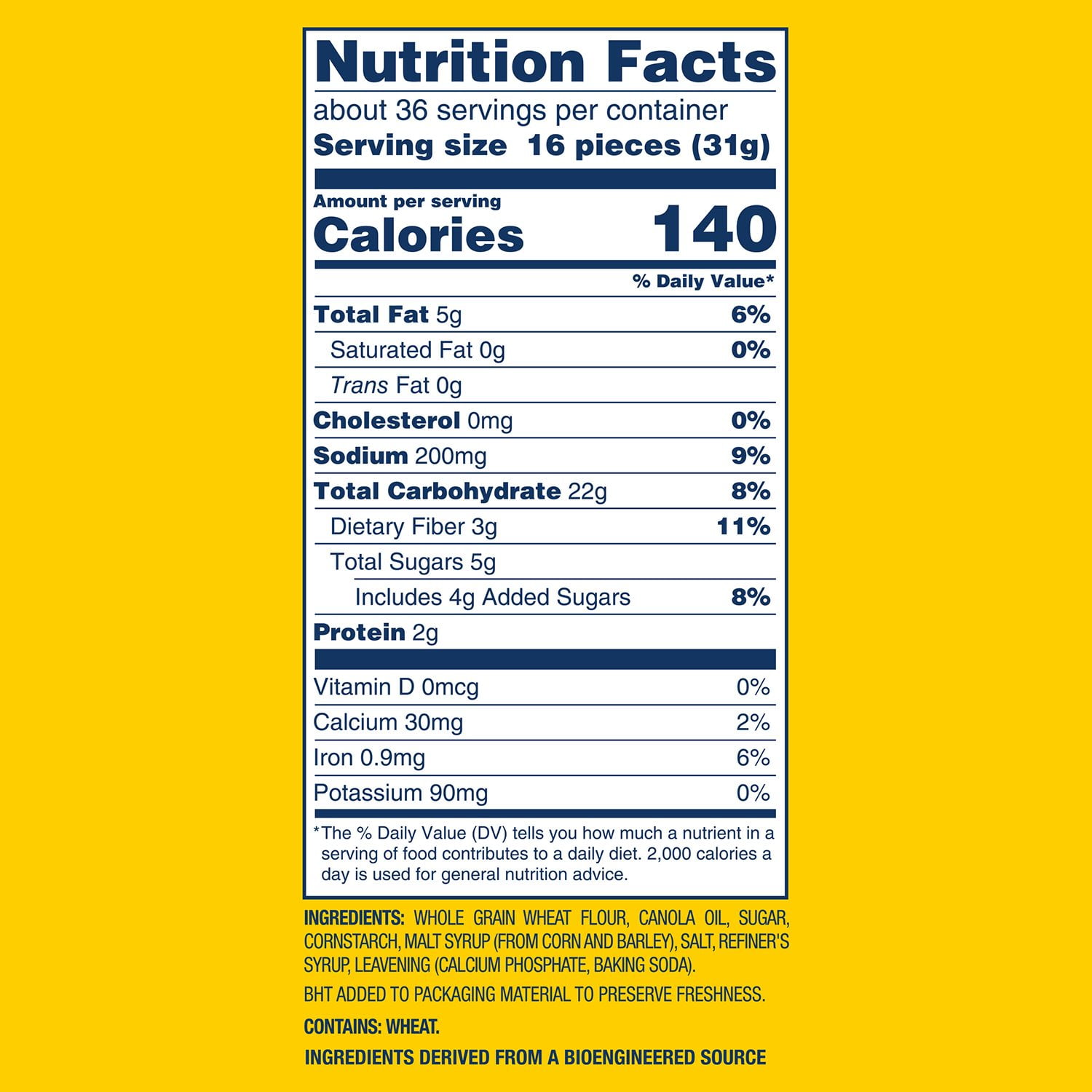 Each serving of these crackers contains only five grams of fat and 21 grams of whole grains. They are free from cholesterol, high-fructose corn syrup, and artificial colors and flavors, making them a wholesome choice for your snack cravings. Whether you’re preparing appetizers for a party, selecting snacks for school or the office, or simply enjoying a snack at home, you can feel good about choosing Wheat Thins.