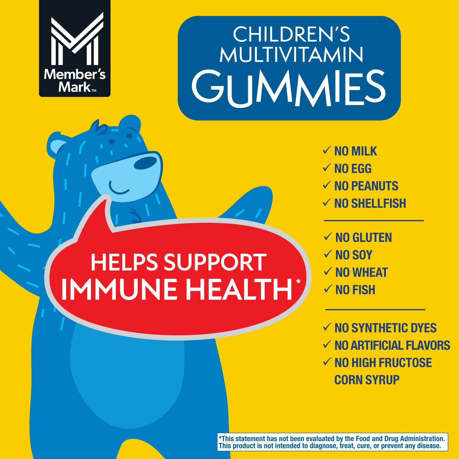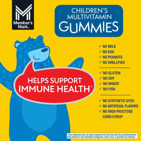 Member’s Mark™ Children’s Multivitamin Gummies are a dietary supplement with a complete multivitamin formula containing 11 essential vitamins and minerals to help support immune health*. This bottle contains 300 delicious gummies that help your little ones get their daily vitamin requirements met in a way they will look forward to. Plus, your children will love the fun gummy bear shape.