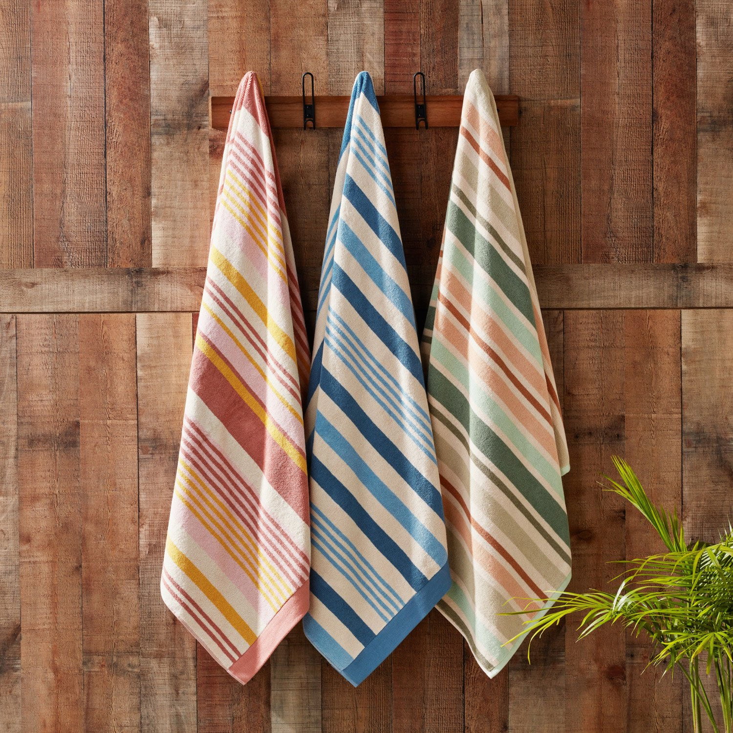 Crafted with a resort-quality construction, our 100% BCI cotton Member’s Mark™ Oversized Sand Resistant Striped Beach Towels offer superior absorbency and 488 GSM. These XL towels measure 40″ x 72″ for first-class comfort when you’re laying out. Each set comes with two striped sand resistant beach towels of the same colors.