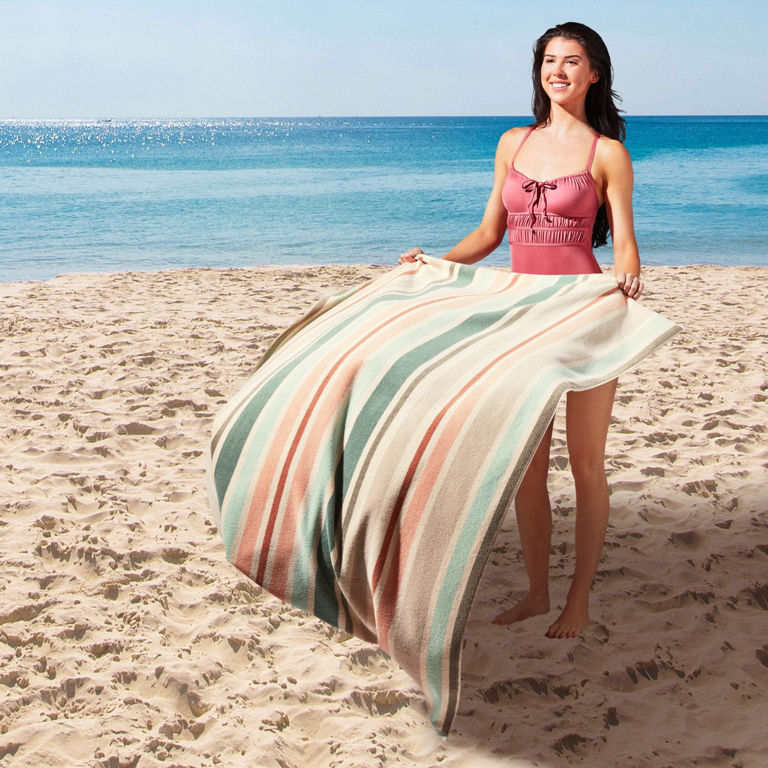 These extra large sand resistant beach towels are perfect for your next beach outing. You can also use them as bath towels on laundry day. These beach towels are excellent for drying off after a dip in the ocean. The “Sand Side” label makes it easy. Just shake and go!