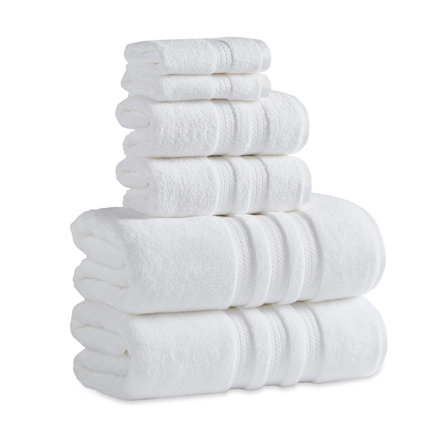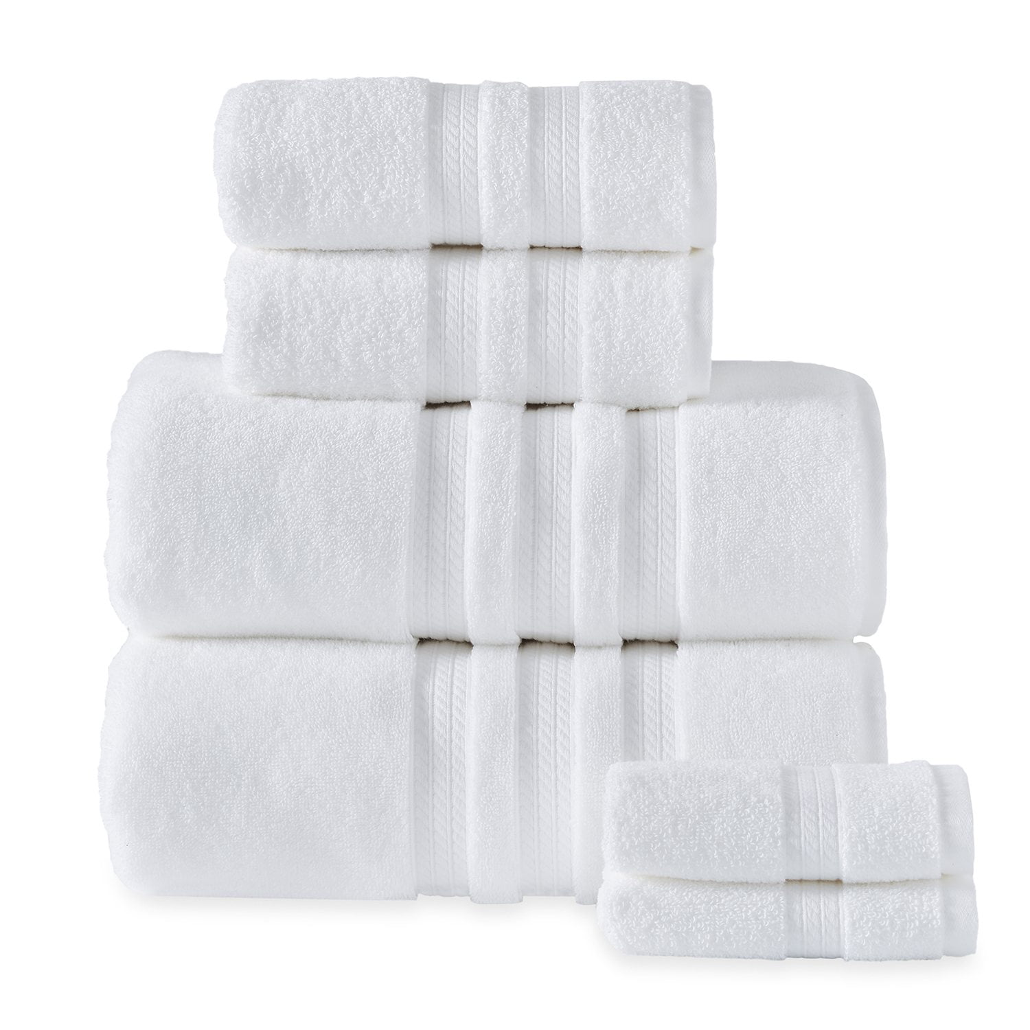 Each pack comes with a deluxe set of two bath towels, two hand towels, and two washcloths. Choose from eight different colors to match your style. Our 100% cotton bath towels come in a size of 30″ x 58″. Hand Towels measure 16″ x 32″ and our washcloths are 13″ x 13″.