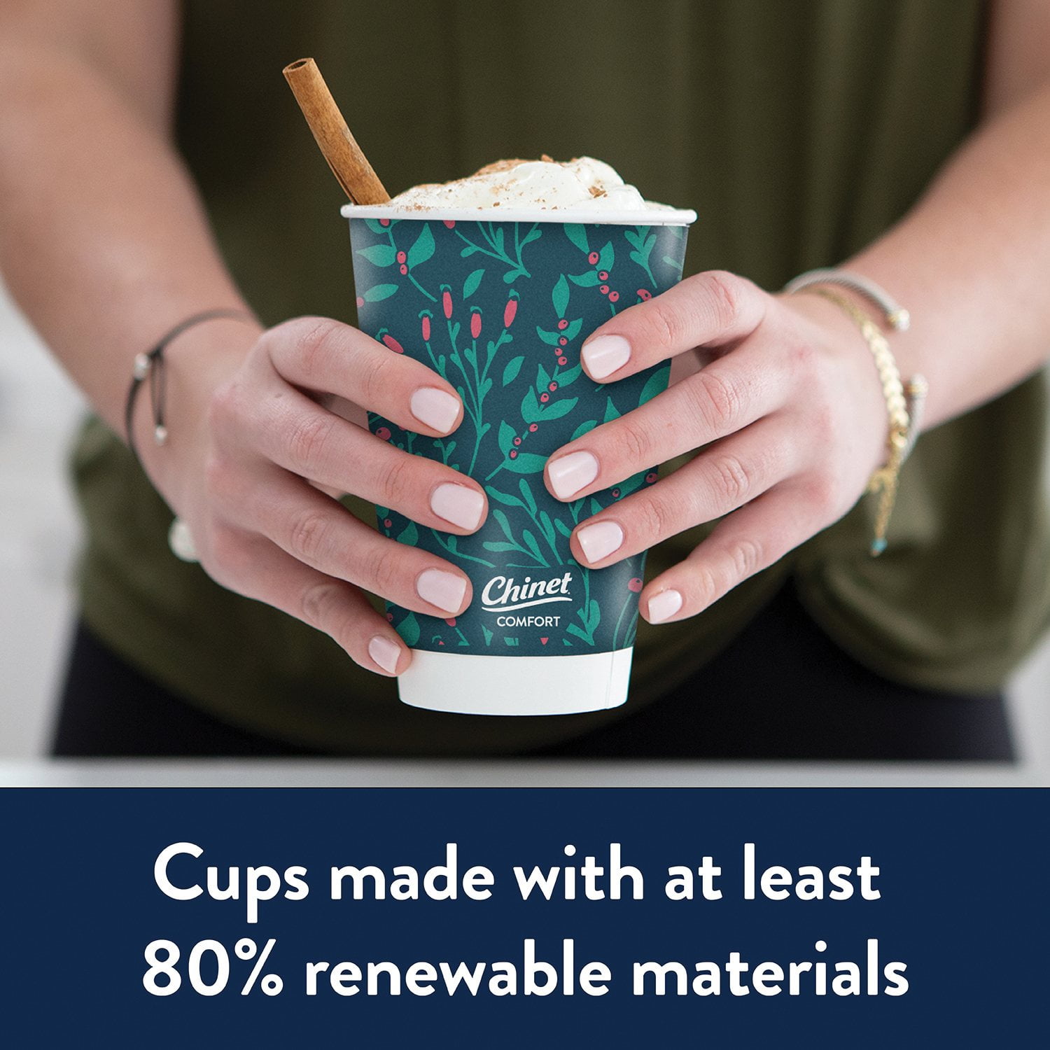 Nothing is more uncomfortable than trying to drink a piping hot beverage in a cheap and flimsy cup. Chinet is known for its quality; these disposable hot cups with lids are called comfort cups for a reason. A cup that’s as strong as your coffee, Chinet Comfort® cup won’t leak, so you can fill it up and refuel. Our cups are engineered with a snap-on lid to prevent spills. When you hear the “Snap!” you know your drink will stay put through every bump in the road. While your drink stays hot, your hands will be perfectly warm with our double-insulated built-in sleeve.