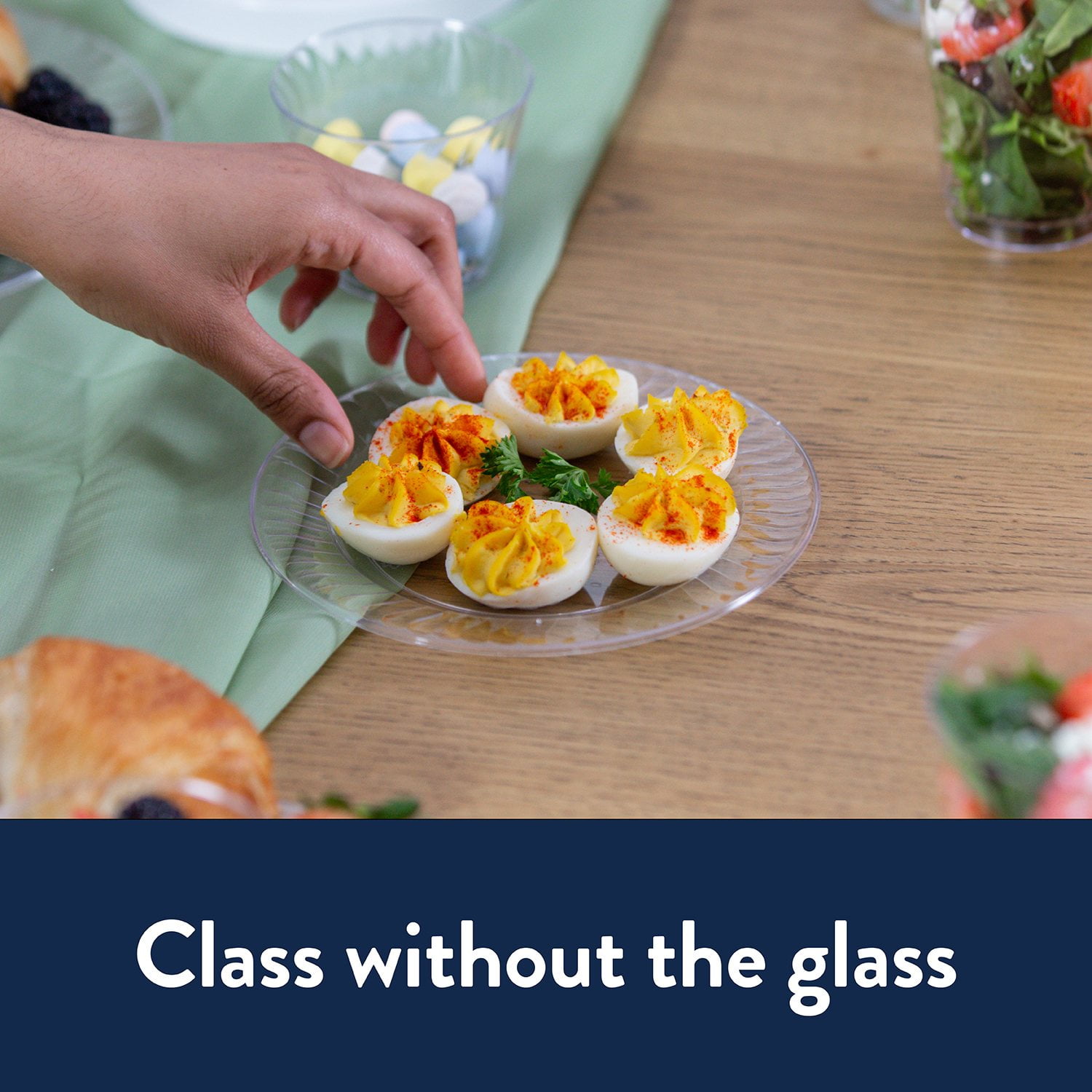 Skip the fussing over fancy china. Fussing over triple-fudge brownies, on the other hand? Now we’re talking. These 7″ dessert plates have that appearance of glass and the strength of premium plastic which makes them ideal for showing off your cake decorating skills and for digging into a delicious slice of Boston cream pie.