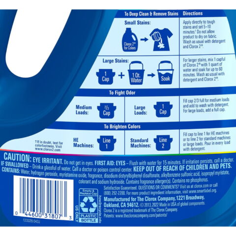 Clorox 2 for Colors Max Performance Stain Remover & Color Brightener is designed to remove stains, eliminate odors, and brighten colors all in one. This color-safe laundry stain remover packs a 4-in-1 formula that not only removes 50% more stains than detergent alone with pretreating but also attacks and eliminates tough odors, keeping your clothes looking newer and brighter for longer.