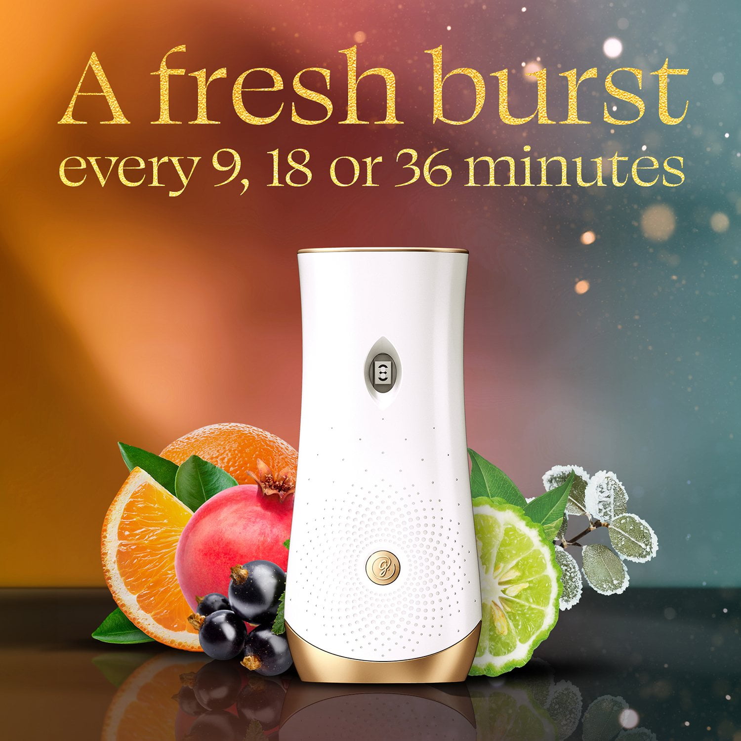 Turn up the season with a burst of freshness with Glade® Orange Zest & Citrus, Pomegranate & Currant, and Bergamot & Eucalyptus Automatic Spray Air Fresheners.