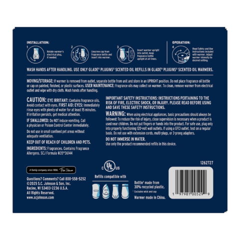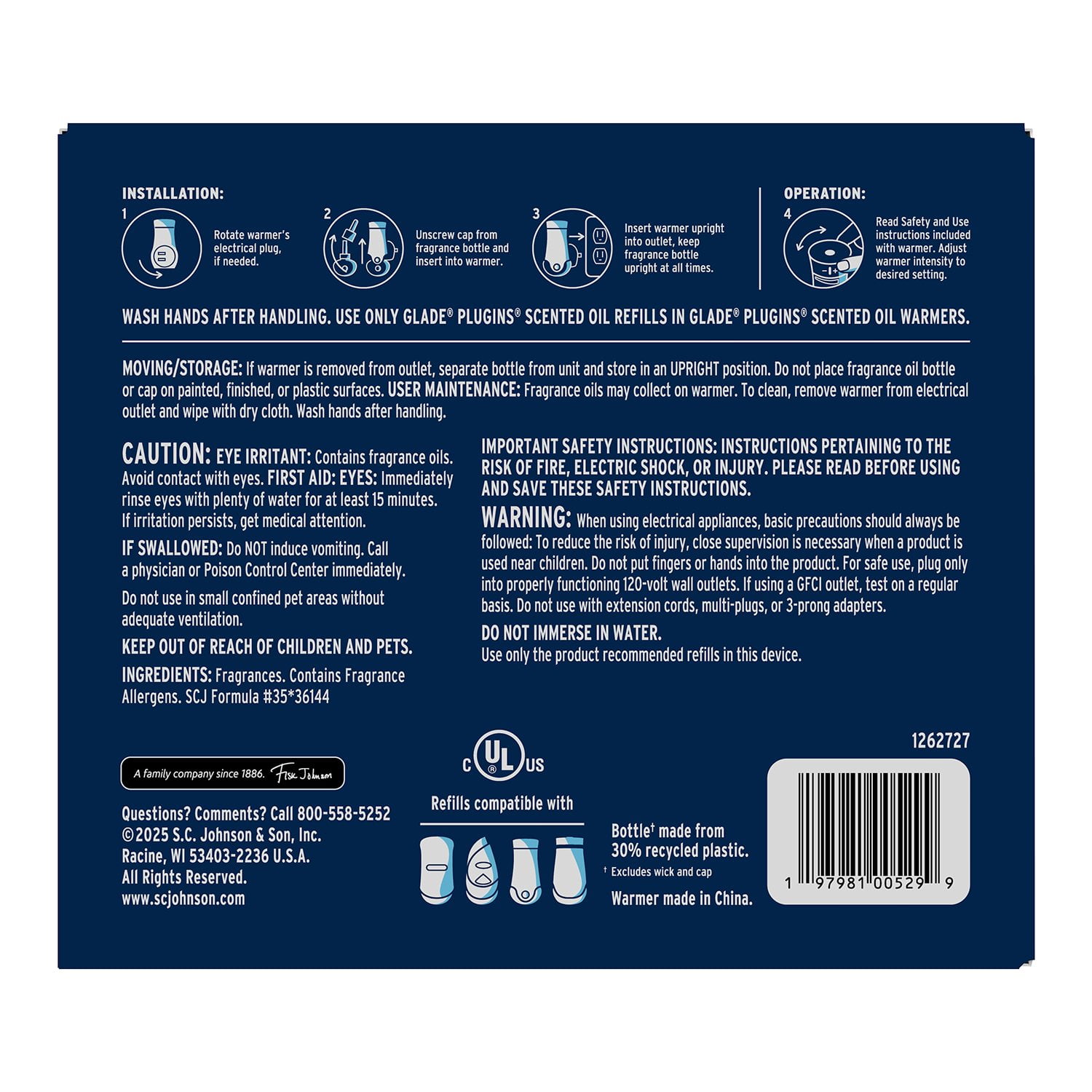 This pack contains 1 warmer and 9 scented oil refills. Simply remove the cap from the refill and insert it into the Glade plug-in warmer. Plug the warmer into an outlet and adjust the level of fragrance to create the mood you want.