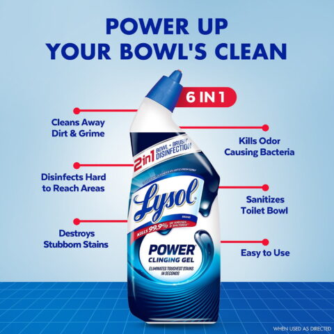 Lysol Advanced Toilet Bowl Gel Cleaner cleans and disinfects toilets. The thick formula sticks to the toilet bowl for excellent deep cleaning and kills 99.9% of viruses and bacteria with complete clean power. The angled bottle targets hard-to-reach areas, including under the rim, to leave your entire toilet bowl sparkling clean, deodorized, and disinfected.