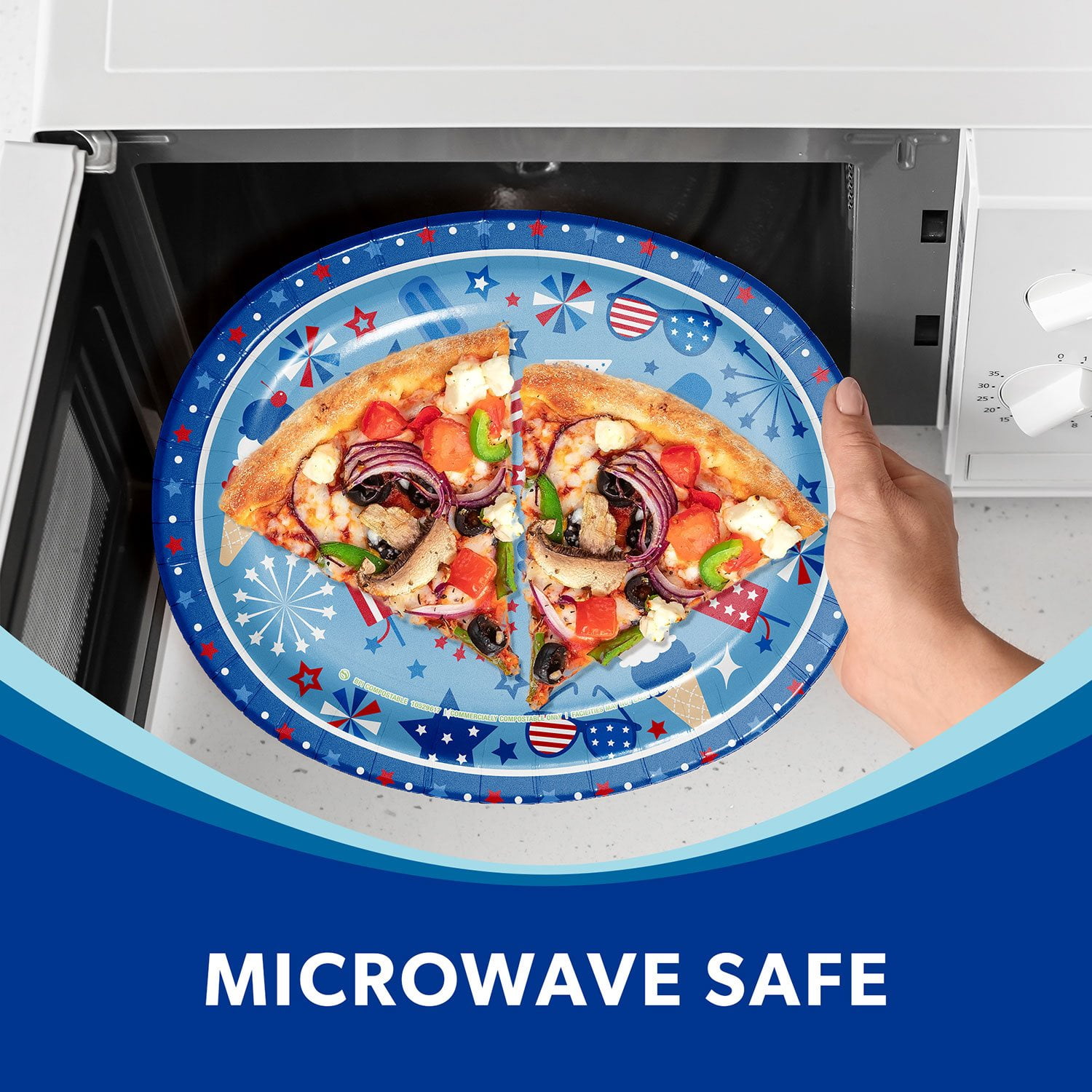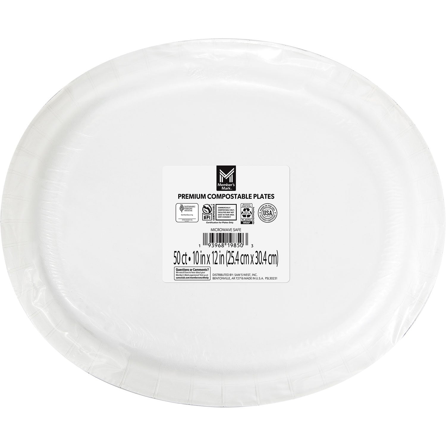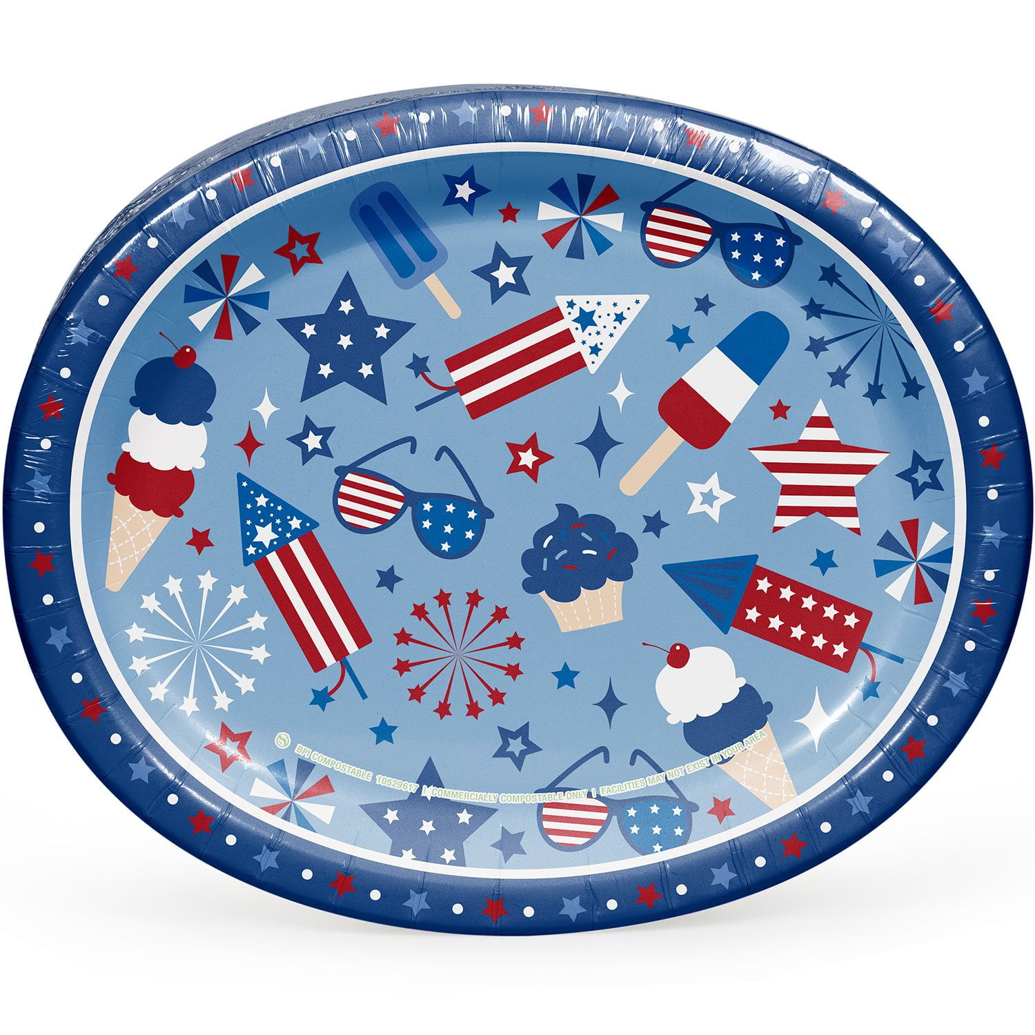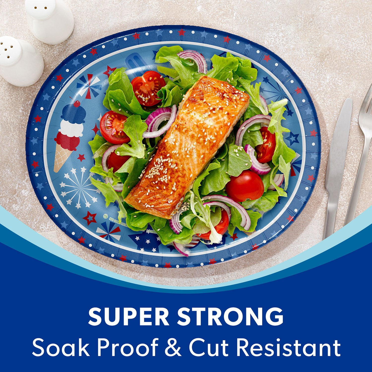 Serve up burgers and hot dogs with style and make every meal memorable with these Member’s Mark Fun for the Fourth patriotic oval paper plates. Made of cut-resistant, BPI compostable paperboard, these Fun for the Fourth oval paper plates are sold in packs of 50, measure a generous 10 inches by 12 inches, and are even safe for microwaving your leftovers.