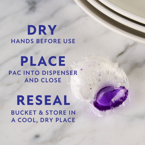 Member’s Mark Platinum Clean Automatic Dishwasher Detergent Pacs are designed to fit most dishwasher dispenser cups and are safe for septic systems. Each pac is used per wash, making the 105-count reclosable bucket a long-lasting and convenient option for households.