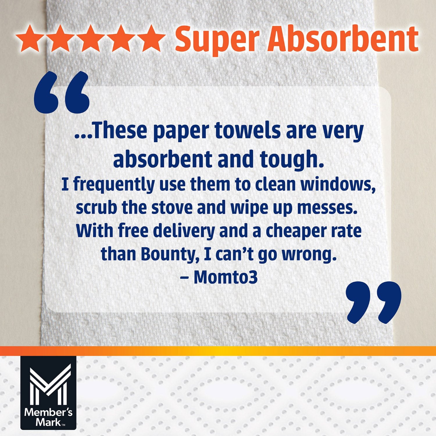Member’s Mark Super Premium Paper Towels are not only strong and dependable for office and restaurant use, but also gentle enough to clean delicate surfaces. They are perfect for cleaning glass, appliances, countertops, dishes, tiles, and more. These towels are versatile, making them a must-have in every home, office, or restaurant.