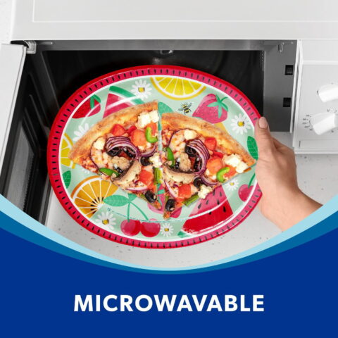 Serve up your summertime treats with style and make every meal memorable with these Member’s Mark Fruity Tropics oval paper plates. Made of cut-resistant, BPI compostable paperboard, these Fruity Tropics summer oval paper plates are sold in packs of 50, measure a generous 10 inches by 12 inches, and are even safe for microwaving your leftovers.