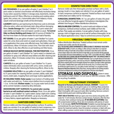 OdoBan® cleans, disinfects, sanitizes, freshens, and eliminates odors. This multi-purpose concentrate is economical and versatile and leaves no residue. One gallon of OdoBan® concentrate makes up to 32 gallons of cleaning solution. Made in USA.