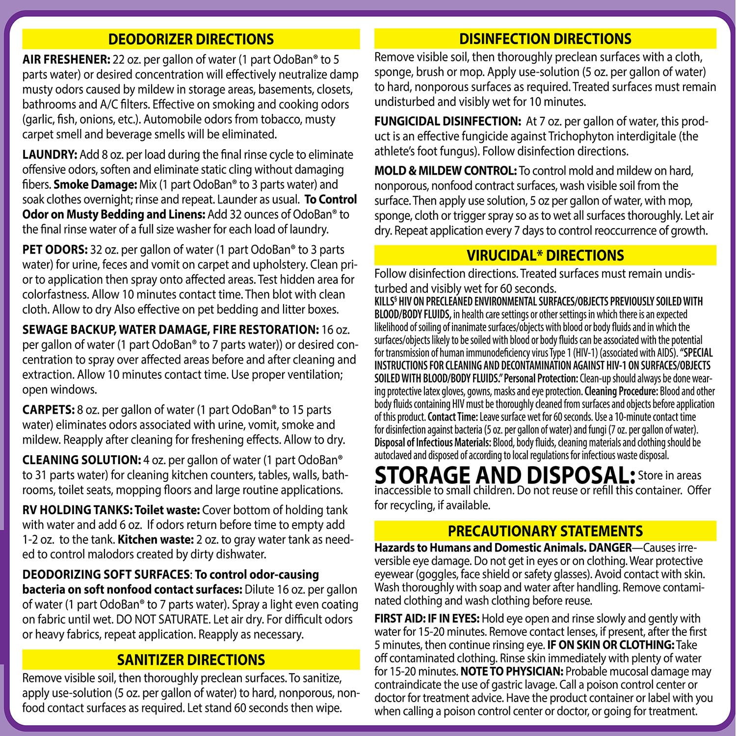 A little goes a long way! One gallon of OdoBan® concentrate makes up to 32 gallons of cleaning solution. Just mix with water as directed on the label.