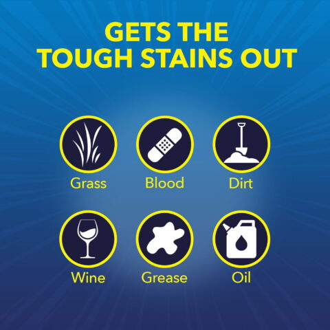 • Advanced stain removal of grass, grease, dirt, wine, blood, ink stains, and more