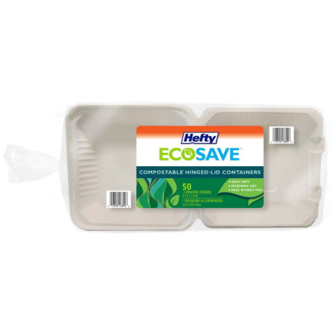 Hefty ECOSAVE 1-Compartment Hinged Lid Container 9" x 9", 50 ct.