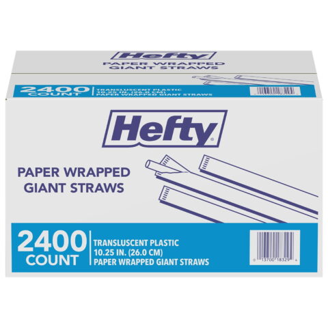 Hefty Giant Translucent Wrapped Plastic Straws, 10.25", 2, 400 ct.
