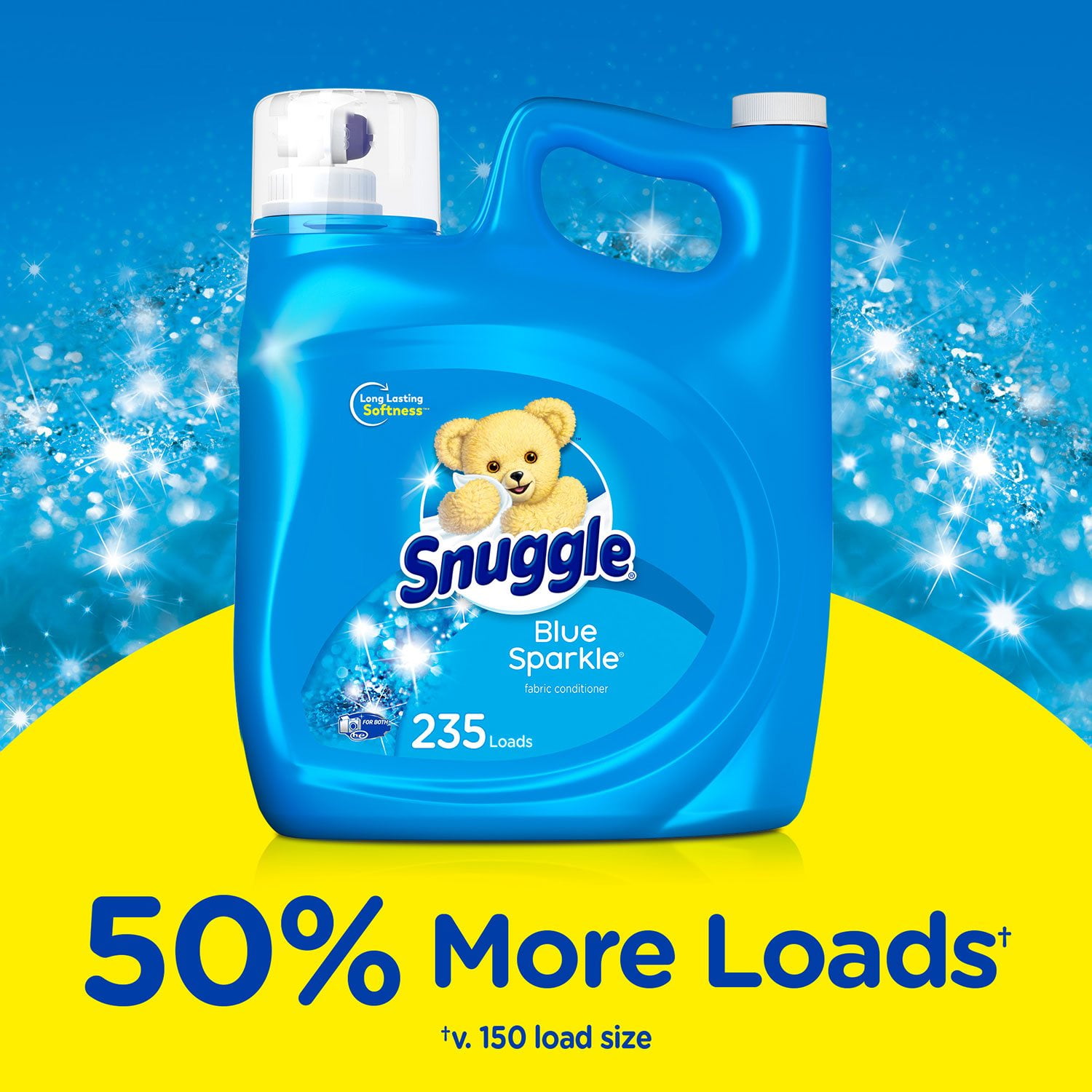 Snuggle Liquid Fabric Softener, Blue Sparkle is specially formulated to deliver snuggly softness and freshness while reducing wrinkles with every load. Snuggle’s original Blue Sparkle scent is a fresh and clean blend of white floral and bright green citrus notes that snuggle up to warm woody notes and soft musk for a comforting, long-lasting freshness your family will love. Using liquid fabric softener in the wash can provide better softness, better freshness, reduced wrinkles and less static cling to the fabrics in your clothes, towels and sheets. Simply add Snuggle’s Liquid Fabric Softener, Blue Sparkle during the final rinse cycle or use an automatic dispenser for added convenience. Safe for standard and HE washing machines. This package contains 188 fluid ounces of Snuggle Blue Sparkle Liquid Fabric Softener, enough for 235 regular wash loads.