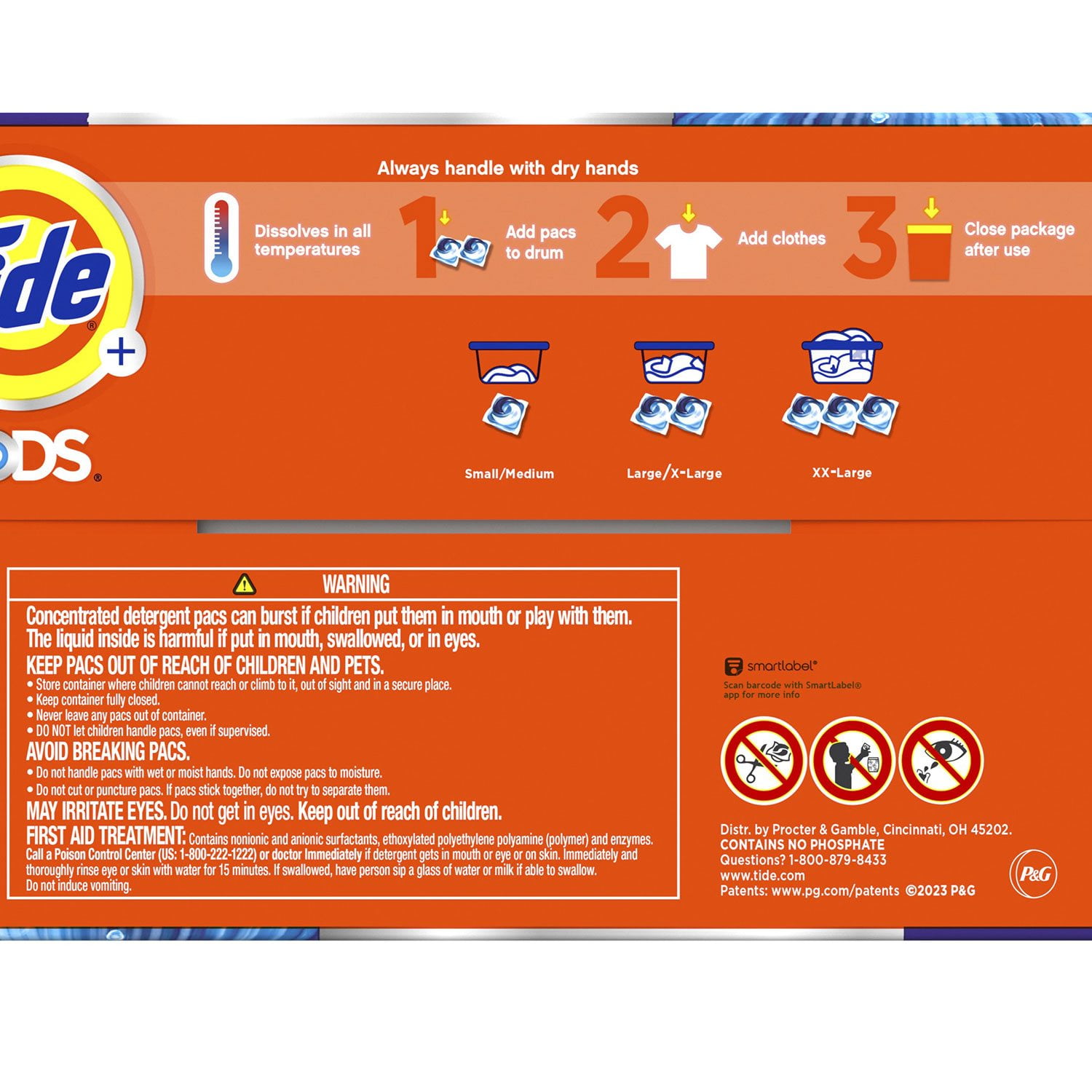 Tide PODS Ultra OXI work in both HE and standard top-load and front-load washing machines. As this special film can be dissolved in water, make sure you always handle pods with dry hands and remember to toss the Tide POD in the washing machine drum before clothes. To guarantee superior performance, add two Tide PODS pacs into the washing machine drum before you add clothes. Use 1 laundry pac for small/medium loads or 3 for larger loads.