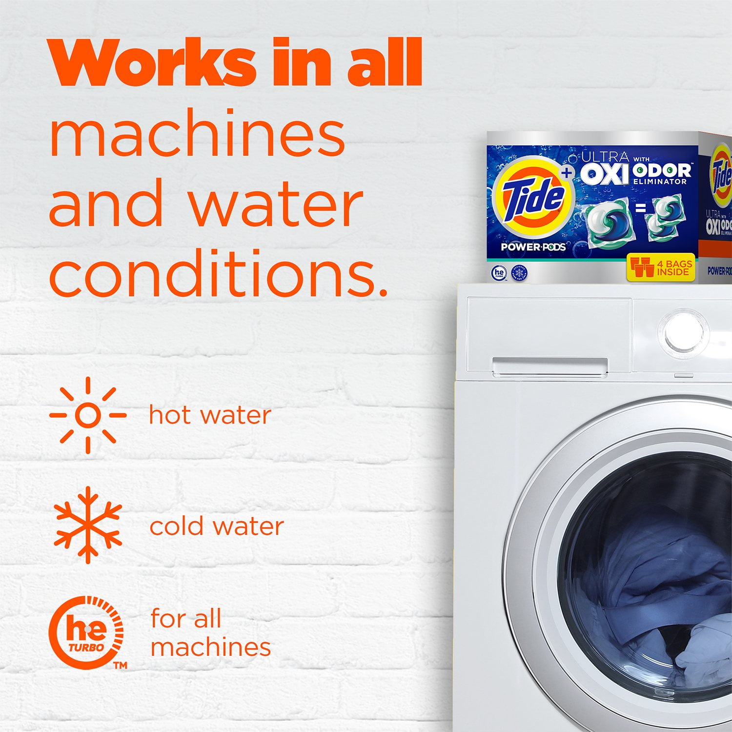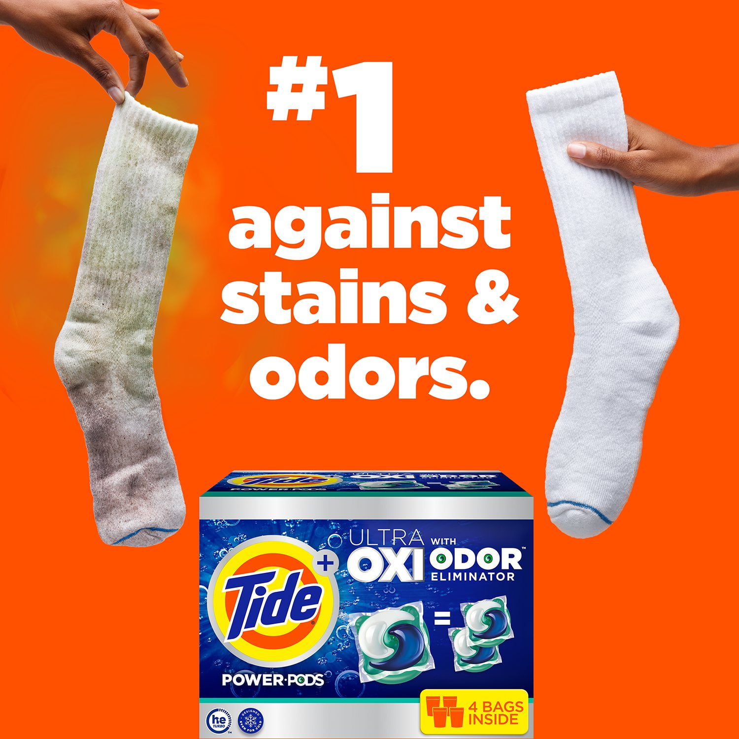 Get the power and the confidence of a Tide detergent clean every time with Tide Power PODS + Ultra OXI with Odor Eliminators Laundry Detergent Pacs.