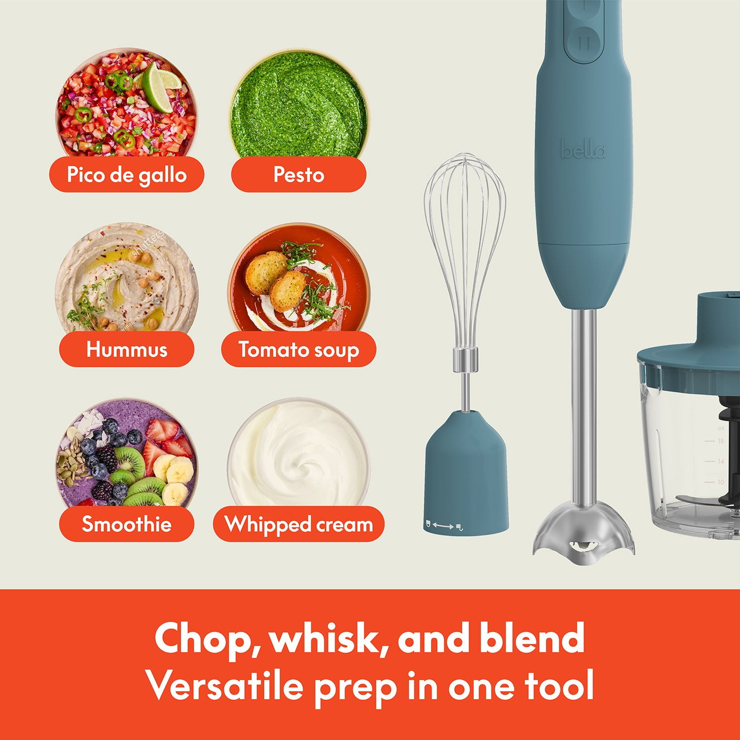 Level up your culinary creations with the bella Immersion Blender System, a handheld shortcut to kitchen magic. This sleek and space-smart tool is designed to blend, whip, and chop with power and precision, making it perfect for soups, sauces, and salsas.