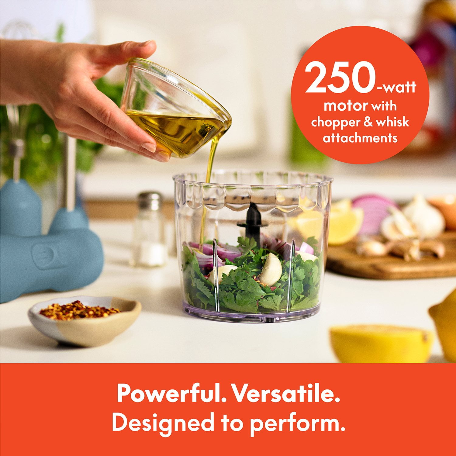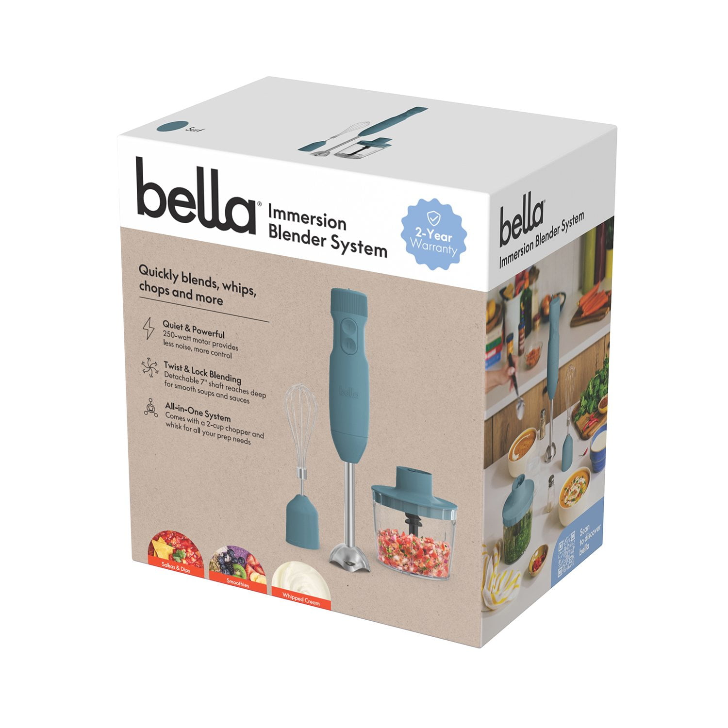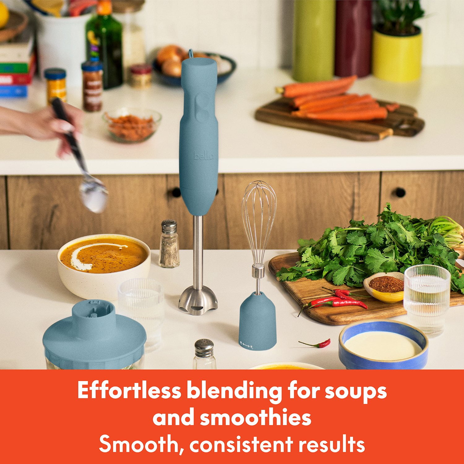 Simple to use and easy to clean, the bella Immersion Blender System is stylish enough to store on your counter. Its compact design saves space while adding a touch of elegance to your kitchen setup.