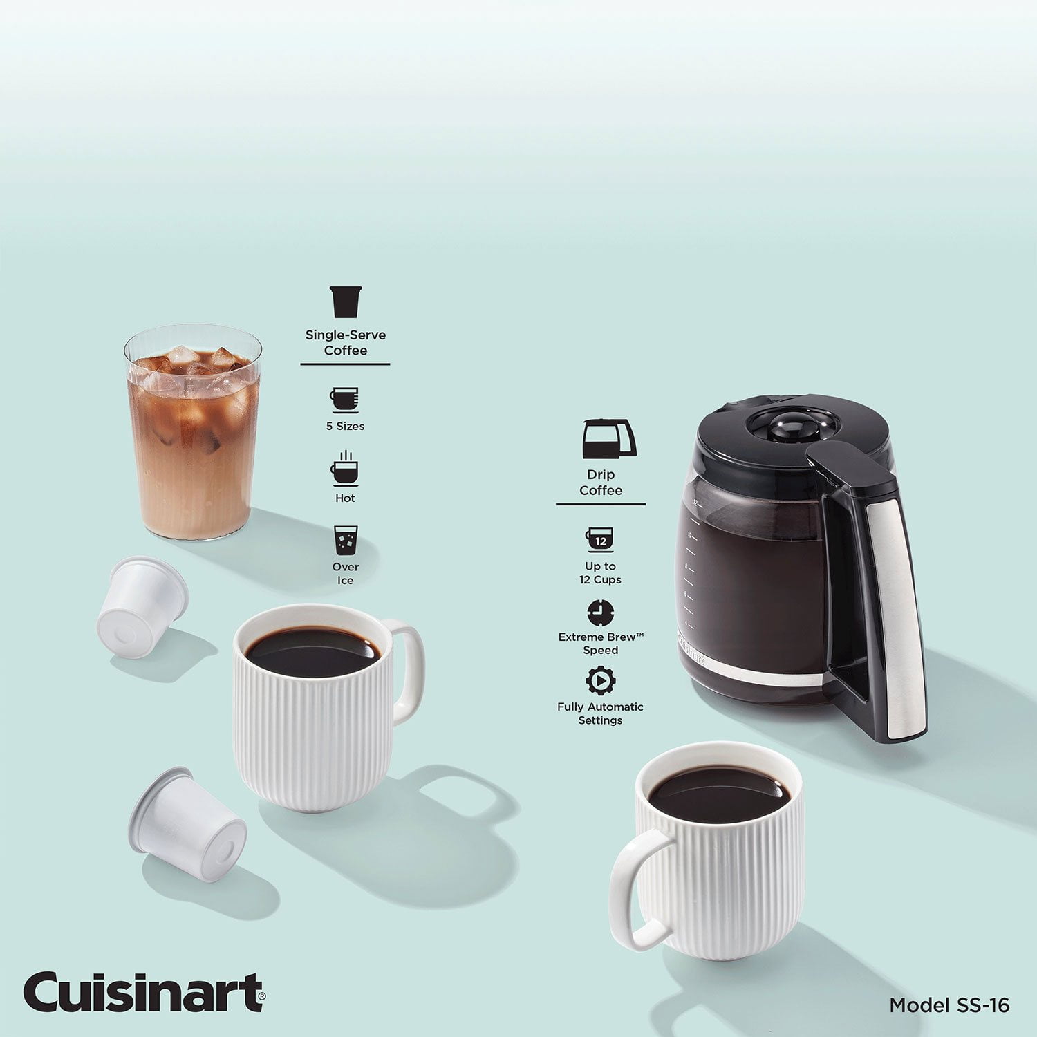 The Cuisinart Coffee Center Barista Bar doesn’t just make great coffee, it also adds a touch of modern style to your kitchen. This space-saving all-in-one unit is designed for convenience and versatility, whether you prefer drip or pod, hot or iced, single cup or a 12-cup carafe.