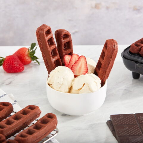 The Dash Waffle Stick Maker is perfect for families with kids or for brunches and entertaining. Individual waffle sticks can easily be dipped into personalized toppings, making breakfast time fun and exciting. Let your imagination run wild with the variety of toppings you can use.