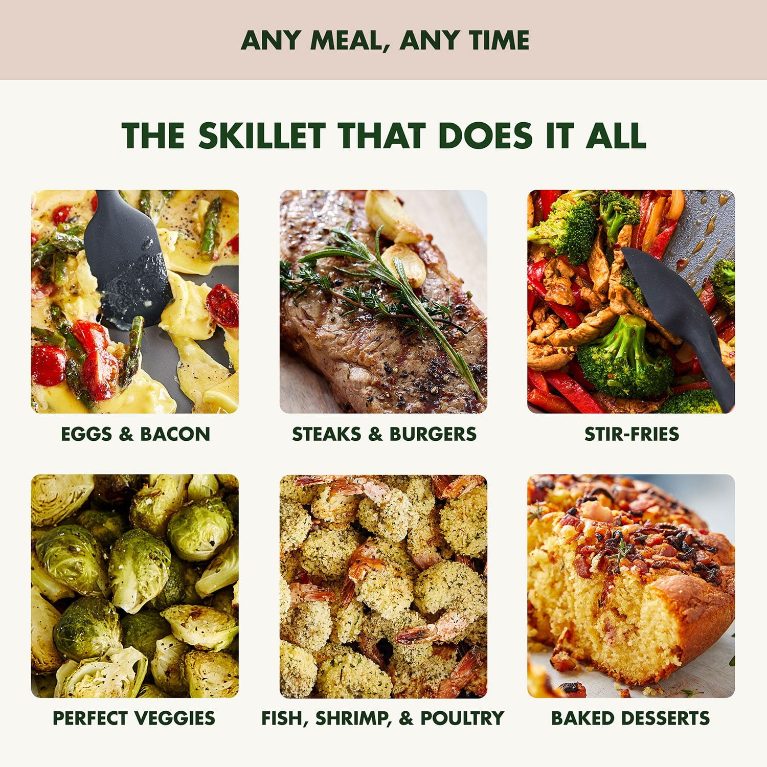 Built for everyday use, this skillet boasts an ultra-tough and scratch-resistant surface. It’s designed to withstand the rigors of daily cooking while maintaining its quality and appearance.