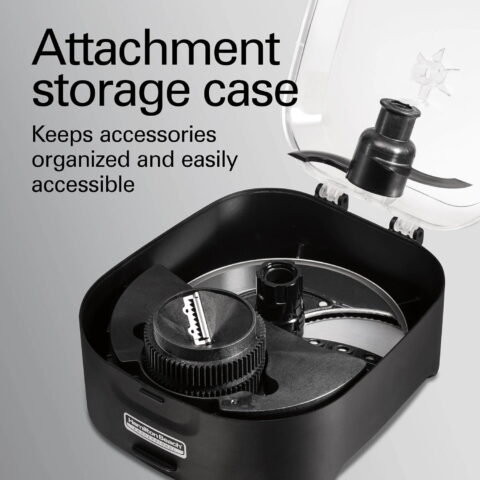 The food processor comes with a large, leak-free sealed bowl with a pour spout to prevent messes. This feature ensures that your kitchen remains clean and tidy even during the most complex food preparation tasks. Additionally, the handy storage case keeps all the accessories organized, accessible, and in one place, making it easy to find what you need when you need it.