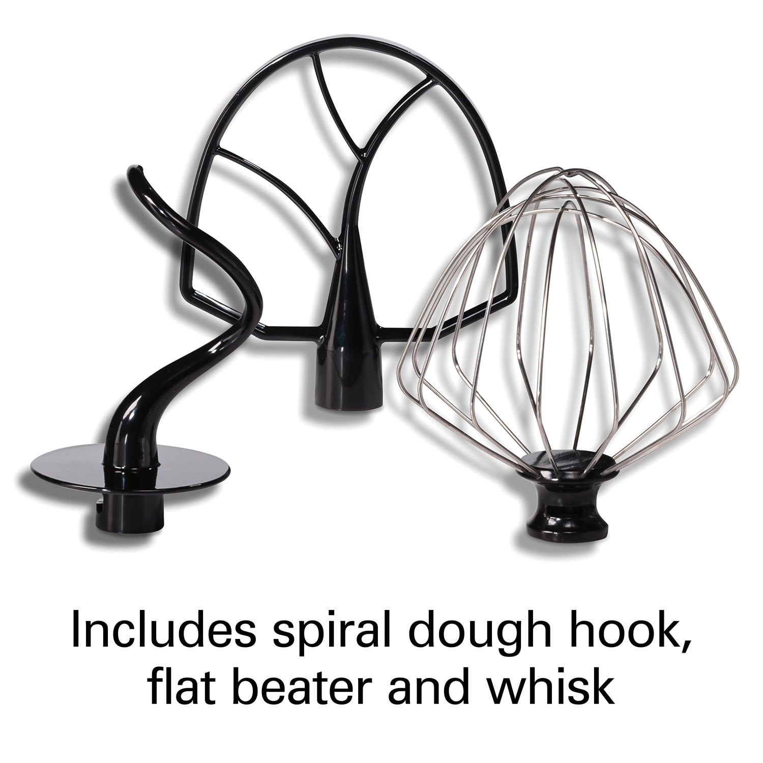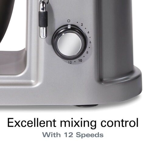 The Hamilton Beach® All-Metal Stand Mixer comes with a flat beater, whisk, and spiral dough hook. For added versatility, it also features a power hub for optional attachments, which you can buy separately. These add-ons can help you with tasks such as rolling pasta, grinding meat, slicing, and shredding.