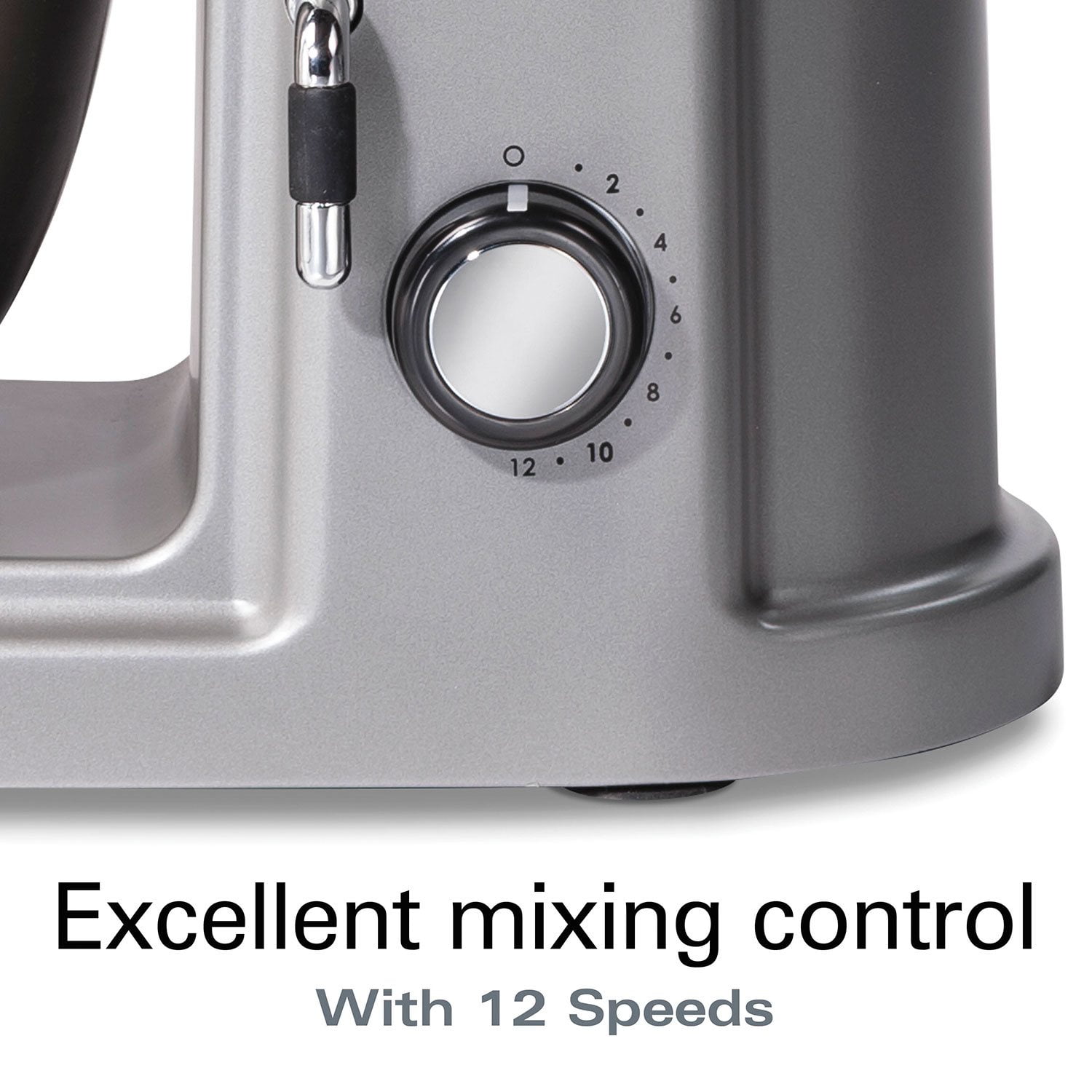 With twelve mixing speeds, this stand mixer offers the flexibility to go from slow folding of ingredients to beating and whipping at top speed. The planetary mixing action ensures complete bowl coverage for thoroughly mixed ingredients. The quick-release head tilts up for easy access to the 5-quart/4.7-liter bowl, and the splash/pour shield prevents splatters, keeping your kitchen clean.