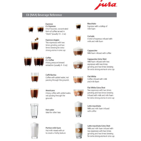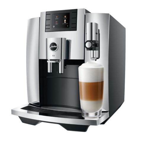 The JURA E8 is designed to brew 17 different coffee specialties effortlessly, making it a versatile addition to any kitchen. This best-selling automatic coffee machine uses whole coffee beans, freshly ground for every cup, ensuring a superior coffee experience. With the Professional Aroma Grinder and JURA’s Pulse Extraction Process (P.E.P.®), the E8 delivers flawless results and fully develops the best coffee aromas.