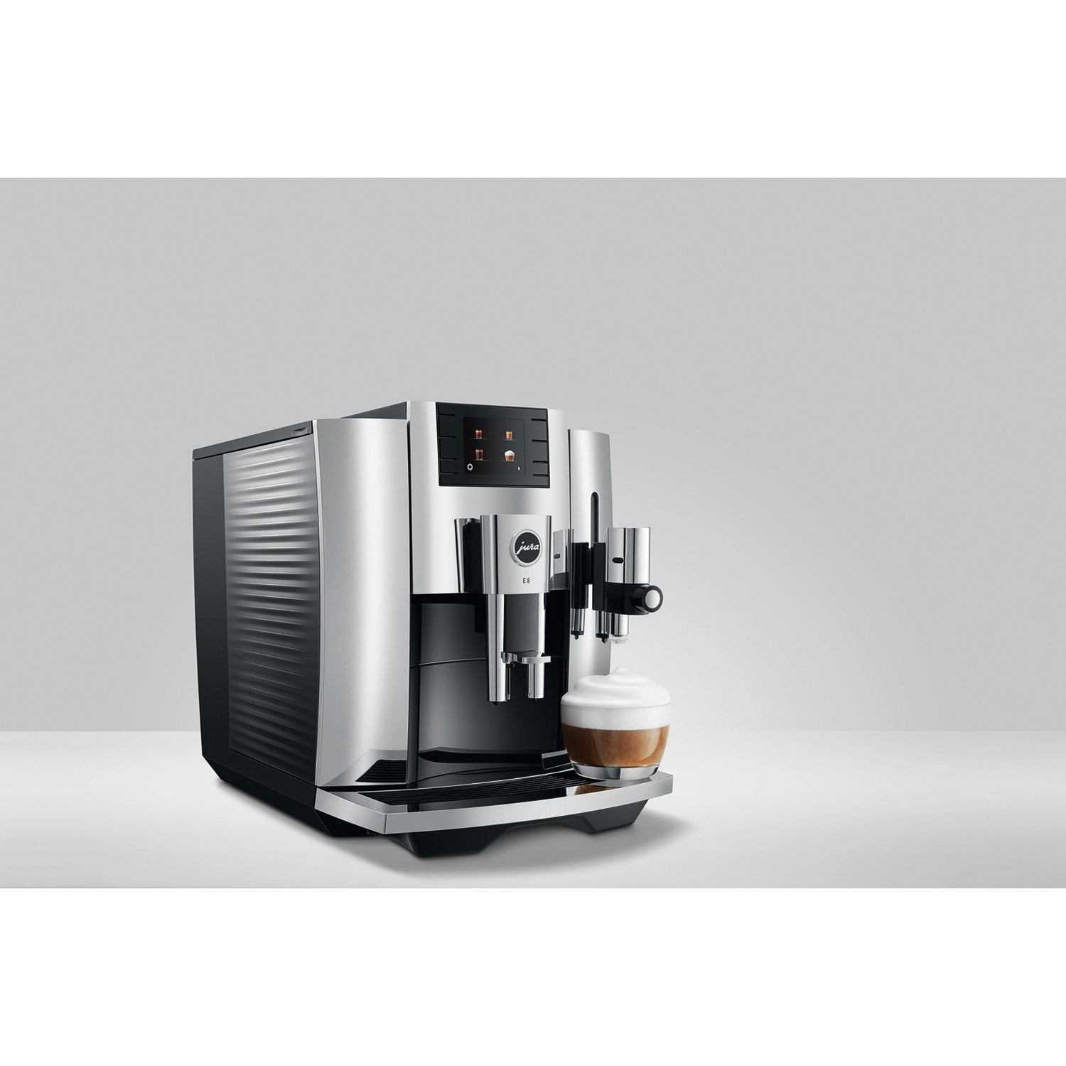 The E8 introduces advanced features previously found only in premium models. Its reinterpreted design incorporates increased functionality, including Cortado and one-touch Americano options. The extra shot function intensifies cappuccino, flat white, latte macchiato, and more, delivering a richer coffee flavor. Achieve feather-like milk foam effortlessly with JURA’s one-touch Fine Foam Frother, while the optimized fluid system ensures perfect preparation of long specialties like Americano.