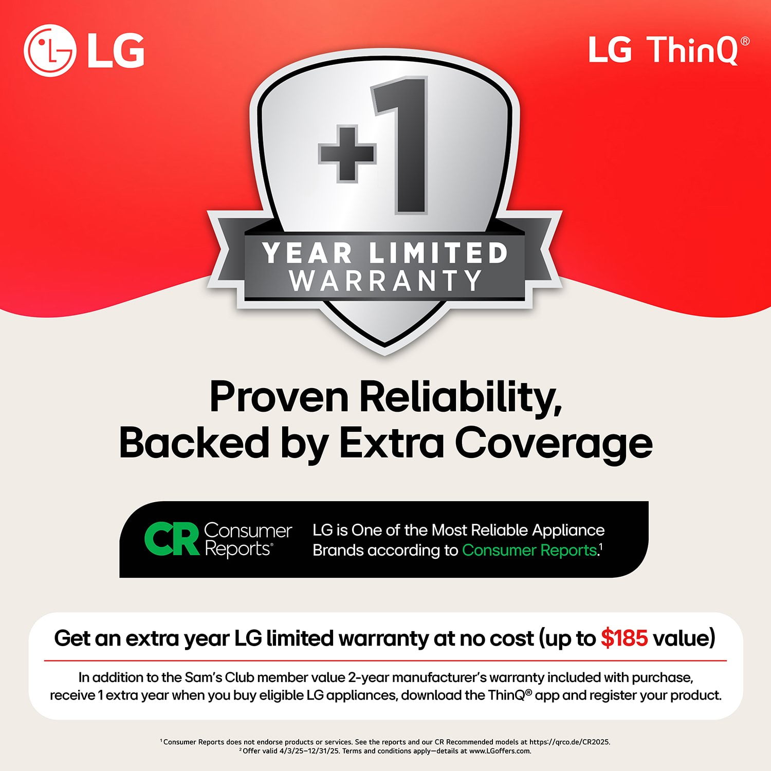 Eligible for LG Buy More Earn More Sam’s Cash Offer*. See Product Details section for more information.
