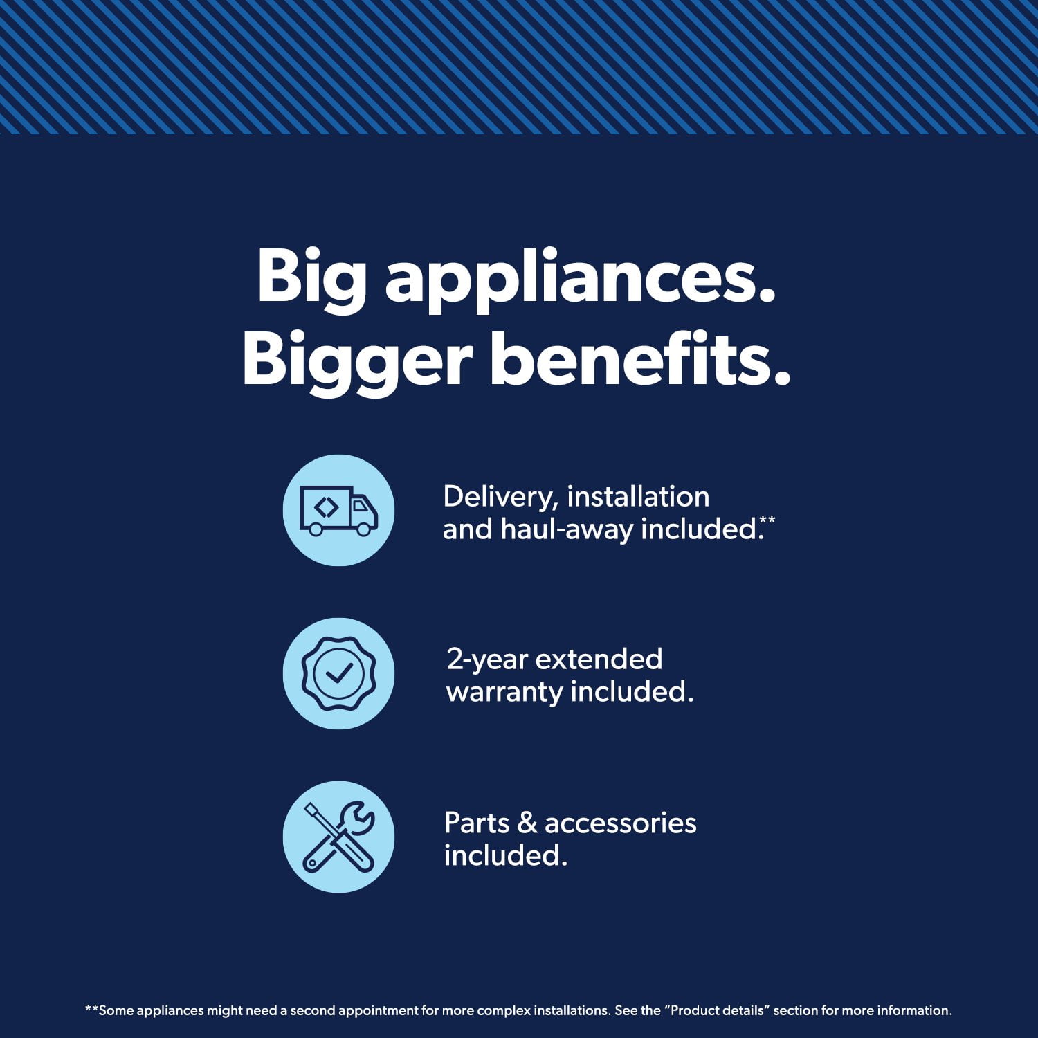 Enjoy exclusive benefits with your purchase, including delivery, basic installation, and haul-away services. This product also comes with a 2-year manufacturer’s warranty and includes all necessary parts and accessories. Please note that the delivery team will act with care to protect your home and merchandise but cannot perform tasks such as property alterations, gas line conversions, or lifting appliances over obstacles.