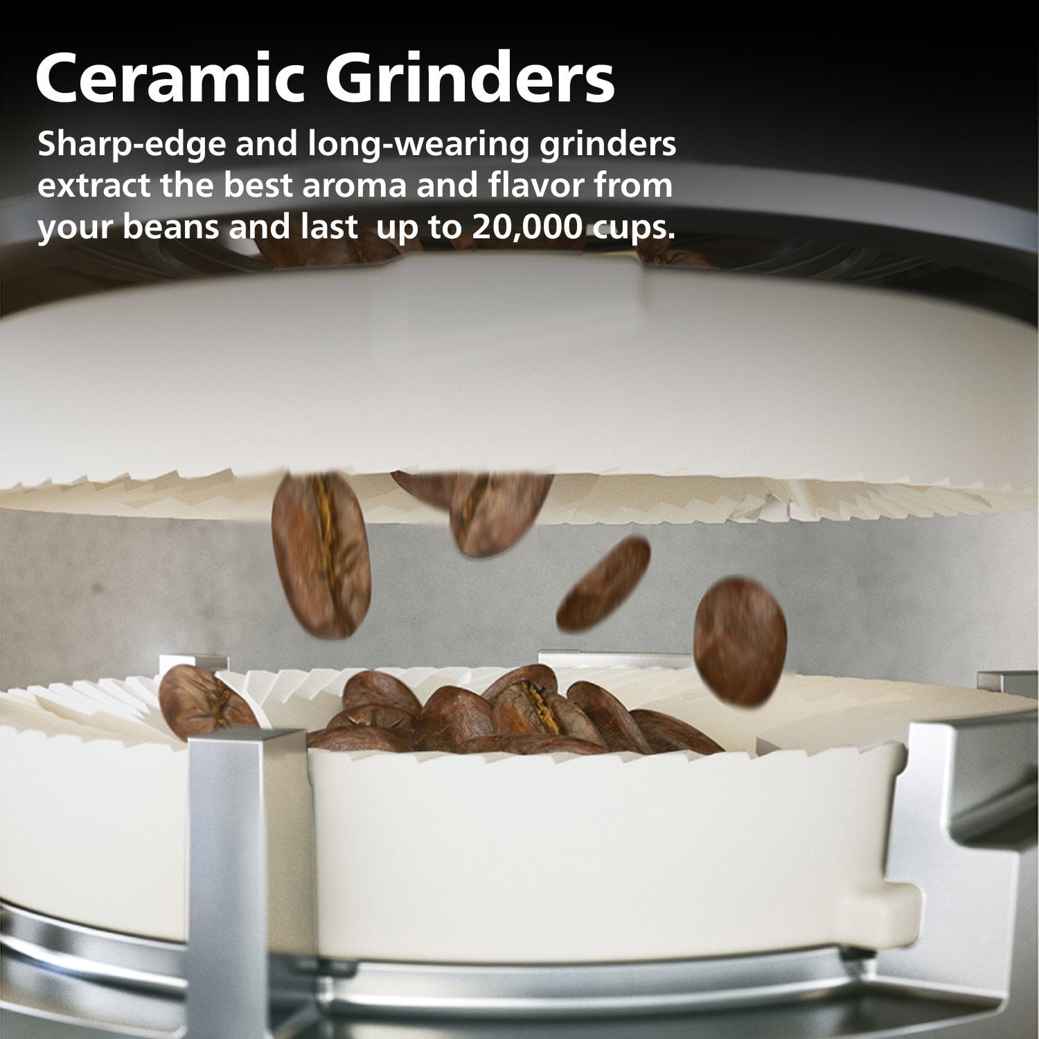 Built to last, Philips espresso machines feature sharp-edge, hard-wearing grinders that extract the best aroma and flavor from your beans, lasting up to 20,000 cups. The AquaClean filter ensures purified water for up to 5,000 cups without the need for descaling, enhancing the machine’s longevity and performance. Enjoy peace of mind with a two-year manufacturer’s warranty included.