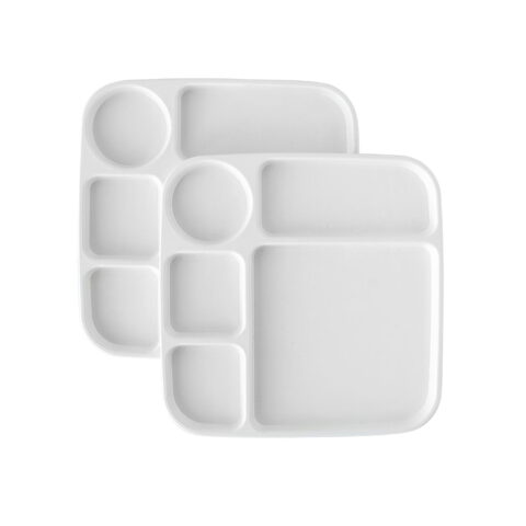 The trays feature five separate compartments to keep the burger buns from soaking up watermelon juice, making them perfect for picky eaters. The 8-oz. bowls are the perfect size for coleslaw, baked beans, fruit and ice cream, and they sit snugly in the round compartment of the trays.