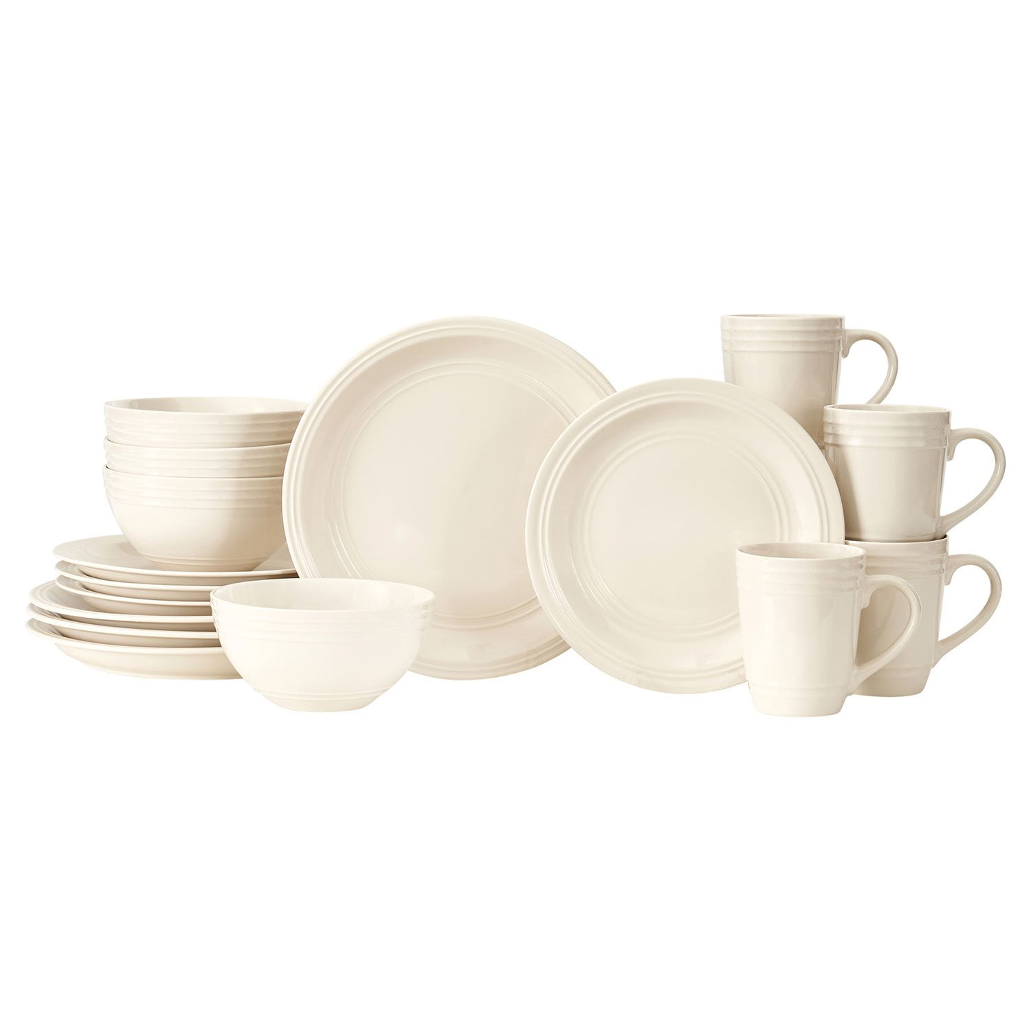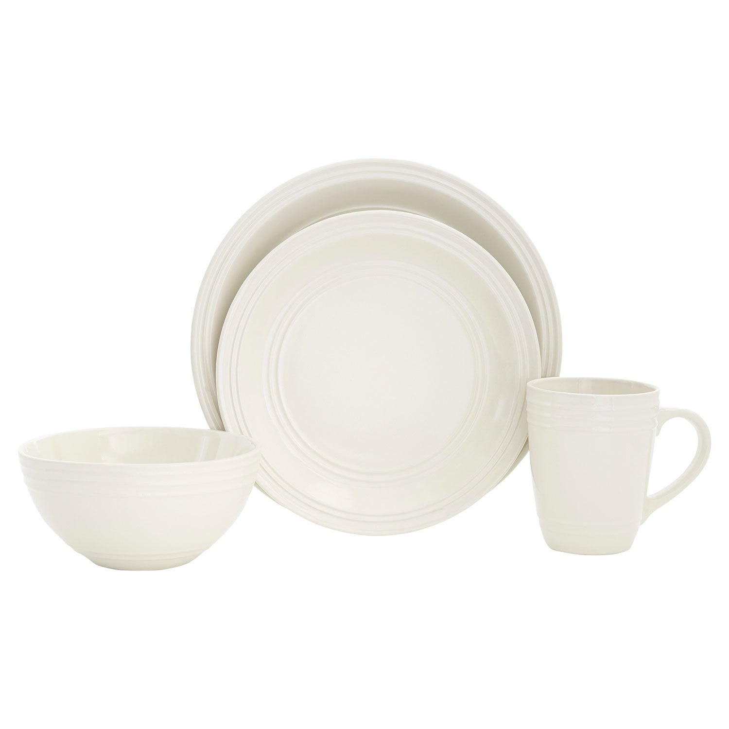 - 16 Piece Set Includes: 4 Dinner Plates, 4 Salad Plates, 4 Bowls, 4 Mugs