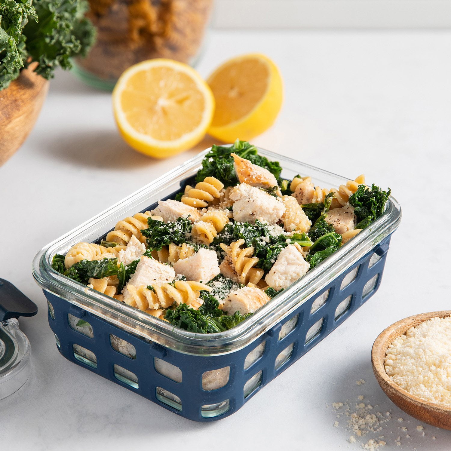 These containers are portable and perfect for work lunches and meal prep. An extra thick silicone sleeve protects glass from chips and breaks and provides a no-slip grip for stability. The leak-proof plastic lids feature airtight snaps, keeping food fresher for longer, and won’t leak for on-the-go use.
