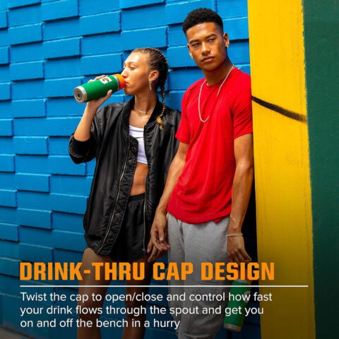 •Drink-Thru Cap Design – Twist the cap to open/close and control how fast your drink flows through the spout