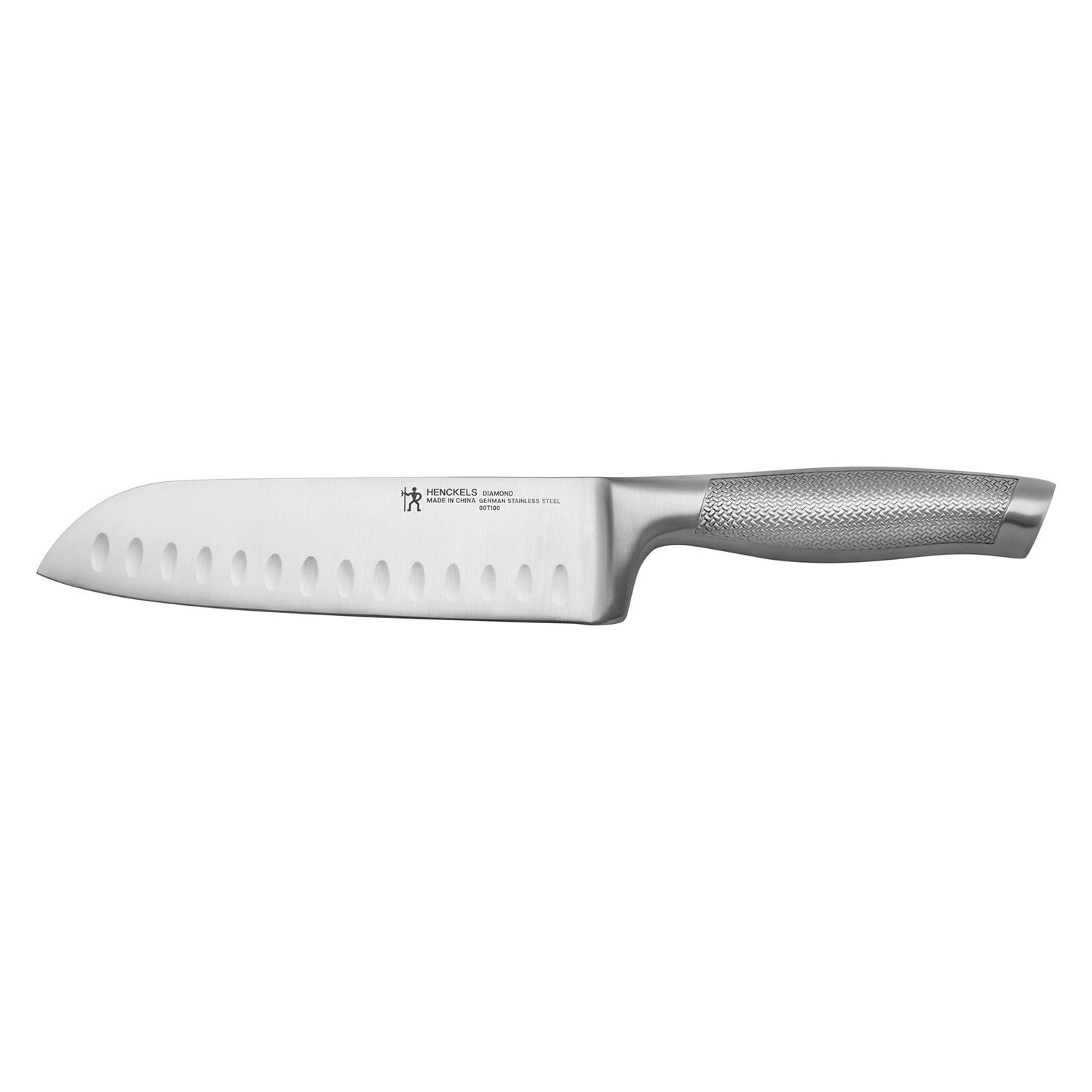 HENCKELS Diamond knives boast a sleek, stainless-steel design with a unique textured handle for comfortable cutting. The 13-piece self-sharpening knife block set features all the knives you need to set your kitchen up right. Peel fruit and create garnishes with the 3-inch paring knife, cleanly slice crusty loaves of bread with the 8-inch bread knife, and chop herbs, dice onions, and mince garlic with the all-rounder 8-inch chef’s knife. The self-sharpening technology boasts built-in ceramic honing wheels that automatically sharpen when knives are stored or removed. This set is complete with 6, 4.5-inch steak knives and kitchen shears, and is housed in a handsome 12-slot block. HENCKELS Diamond knives are crafted from high-quality 430 German stainless steel, perfect for precision cutting. The corrosion-resistant steel is ultra-durable and finely honed for razor-sharp slicing. Easy to clean, these knives are conveniently dishwasher safe. The fully-forged bolster construction seamlessly transitions from blade to handle for durability and balance. Curved for comfort, the ergonomic, slip-resistant handles feature a stylish, stainless-steel endcap that adds aesthetic appeal to your knife block. Embossed with the single man HENCKELS logo, this Halberdier symbolizes Diamond’s superb quality at a remarkable value. Since 1895, HENCKELS has made superior quality knives designed for effortless prepping.