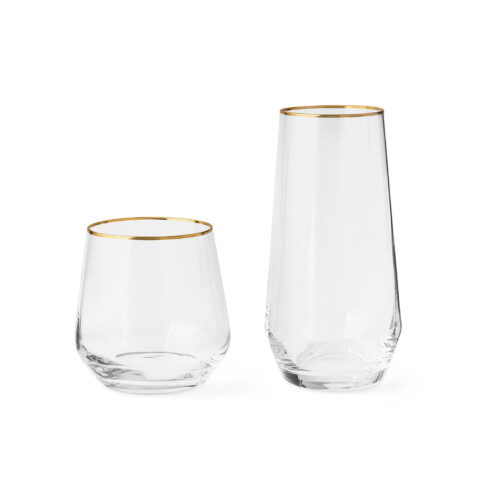 The Member’s Mark™ 12-Piece Modern Gold Rim Crystal Drinkware Set brings a touch of sophistication to any table with a stunning design that fits any occasion. This premium collection includes six 14-ounce tumblers and six 18-ounce highball glasses, each adorned with a hand-painted 14-karat gold rim for a bit of refinement.
