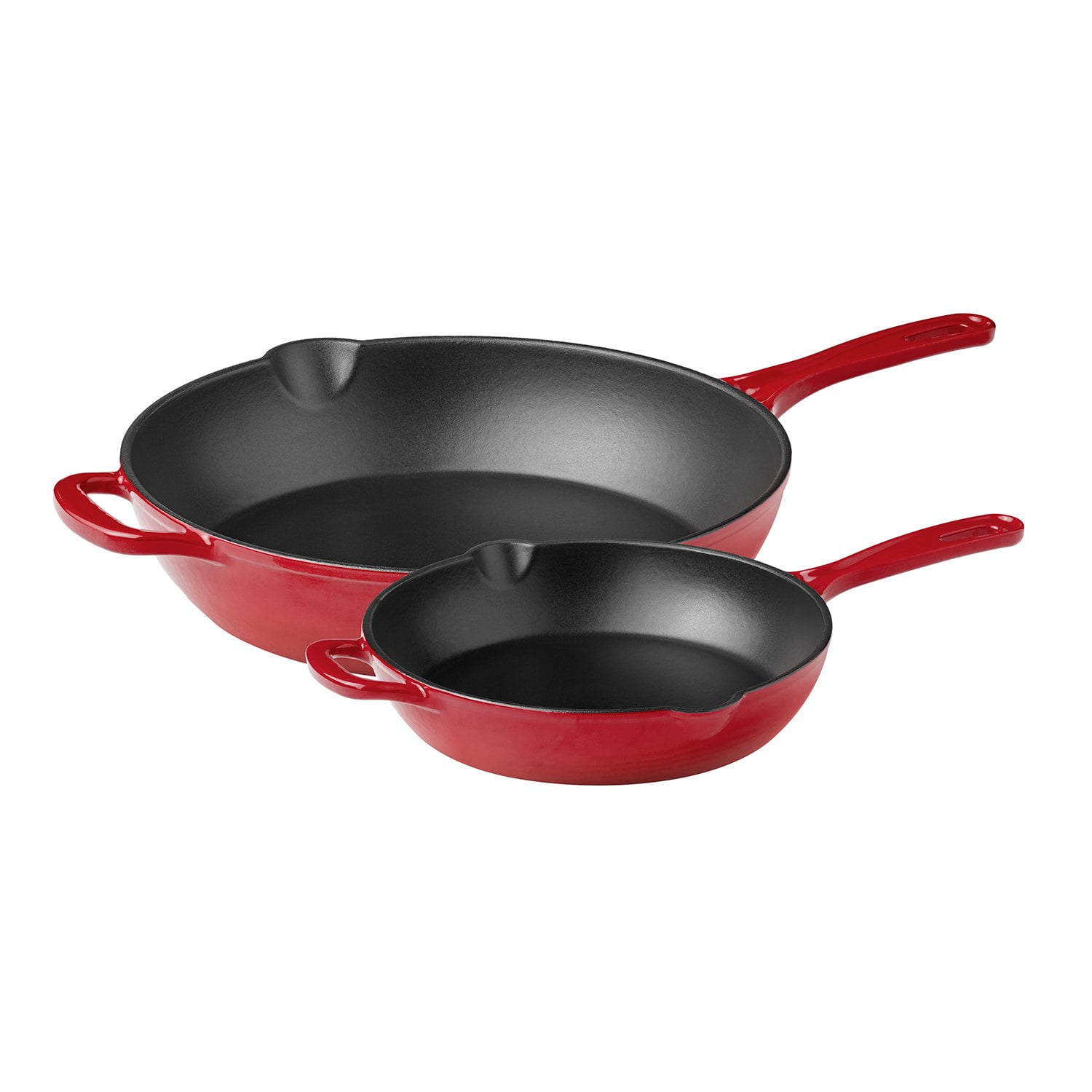 The exclusive enamel coating and long-lasting heat retention make these skillets a kitchen must-have. With an easy-pour side spout, it’s easy to drain excess grease and pour sauce. The heat-resistant, ergonomic cast handles, as well as the side handles provide a comfortable grip for easy moving and serving.