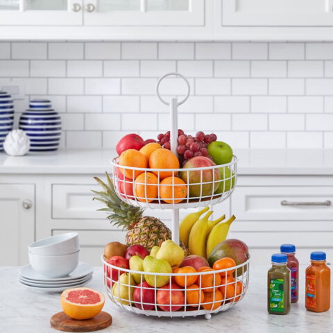 Add stylish organization to your home with the Member’s Mark™ 2-Tier Basket Stand. This sturdy, handcrafted wrought iron 2-tier circular stand can be used on the kitchen counter to hold fruit, vegetables, bread or snacks.