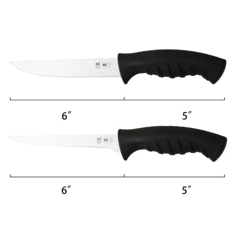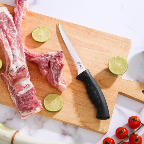 - A 6″ narrow stiff boning knife