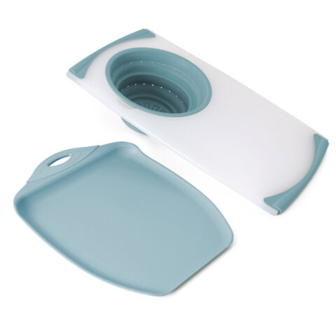 Dexas 2-Pack Over the Sink Strainer and Chop & Scoop Cutting Board, Choose Color