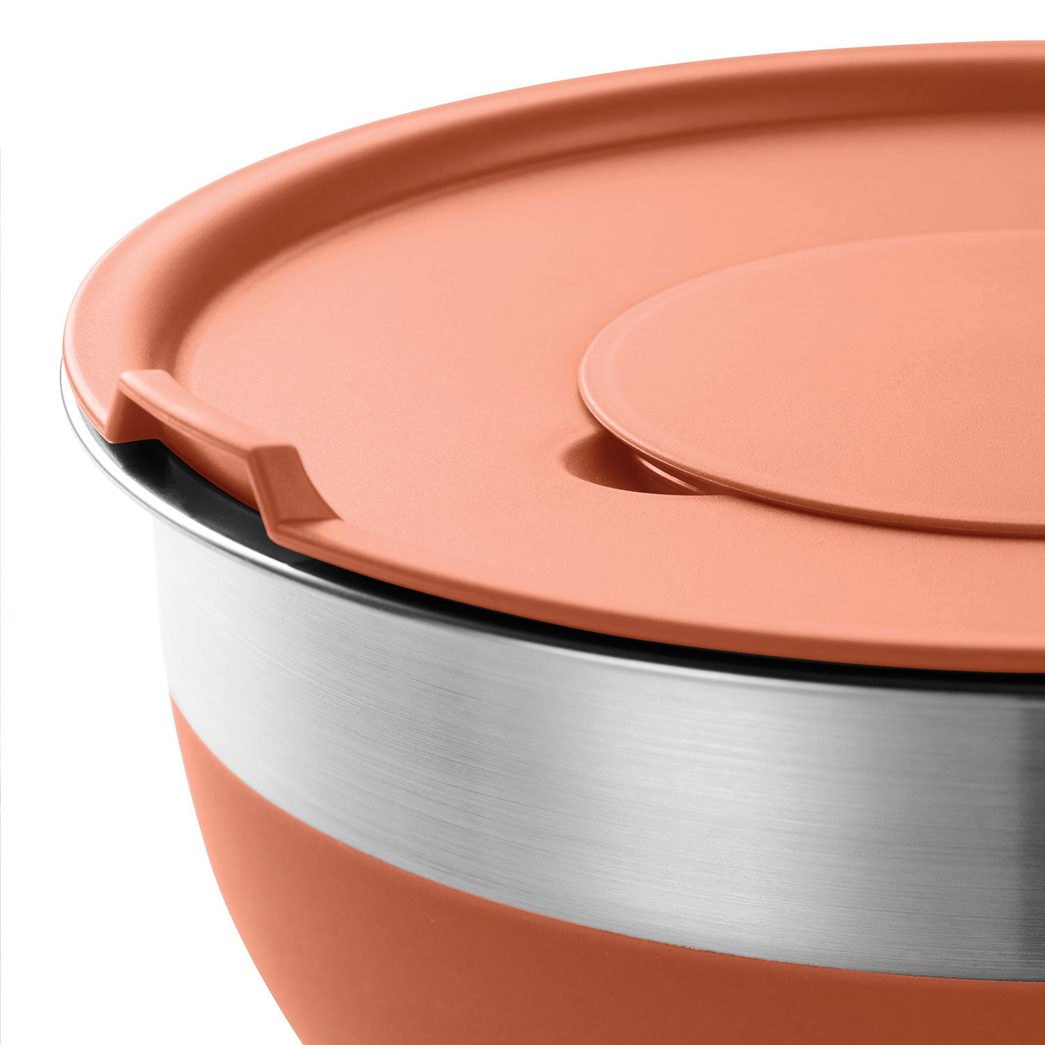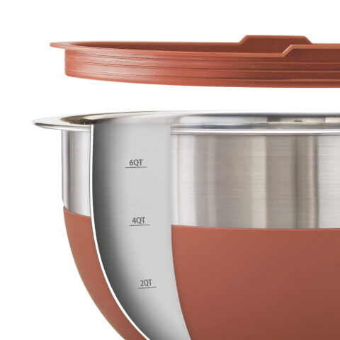 - 10 Pc Stainless Steel and Silicone Covered Mixing Bowl Set offers home and professional cooks four bowls with lids to accommodate a variety of hot or cold ingredients.