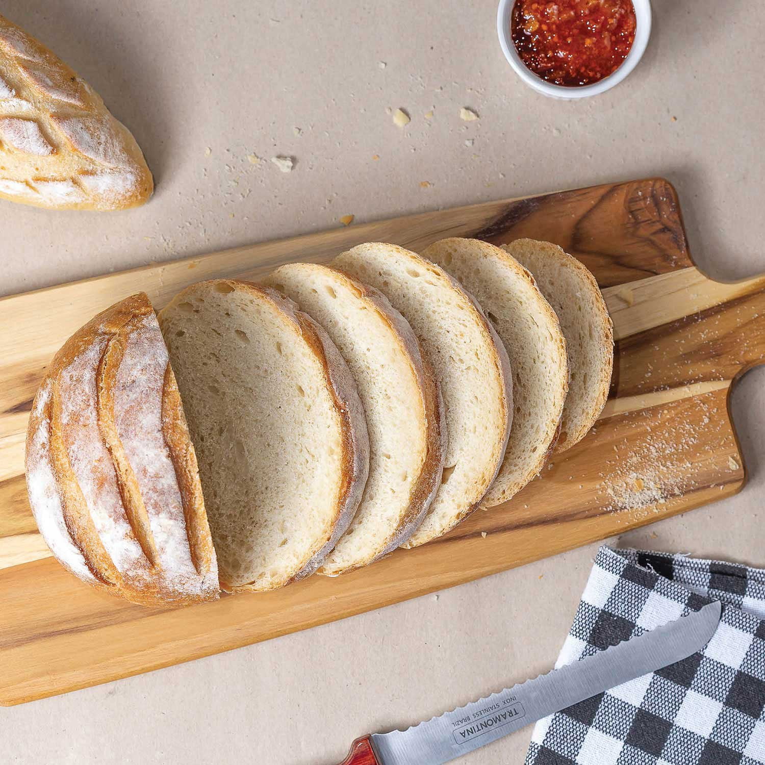 Elevate your hosting experience with the Tramontina 24 in. Charcuterie Board. This larger-sized charcuterie board provides an elegant and rustic backdrop for arranging and presenting an assortment of cheeses, meats, fruits, nuts, and other appetizers.